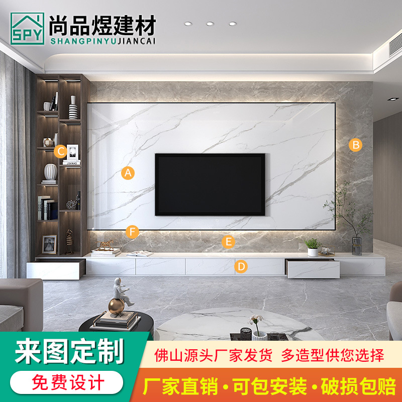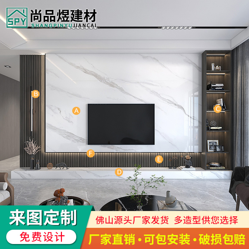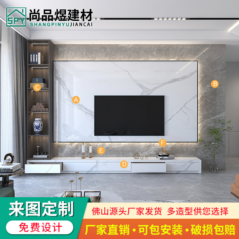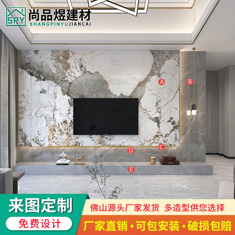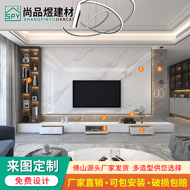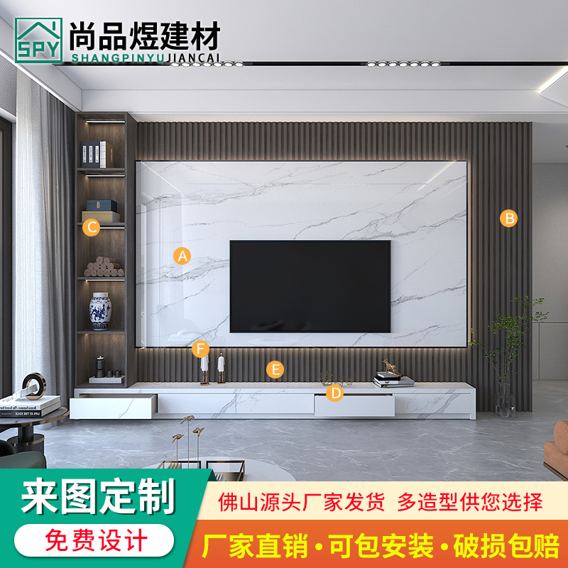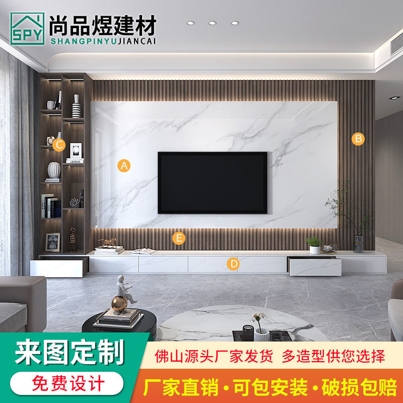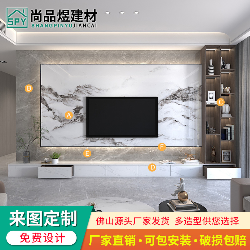 슬레이트 TV 배경 벽 인터넷 연예인 현대 간단한 대리석 정지 TV 캐비닛 조명 럭셔리 타일 영화 및 TV 벽 모양스토어 가기