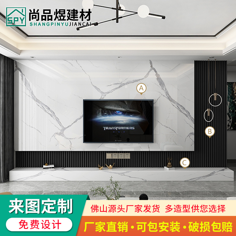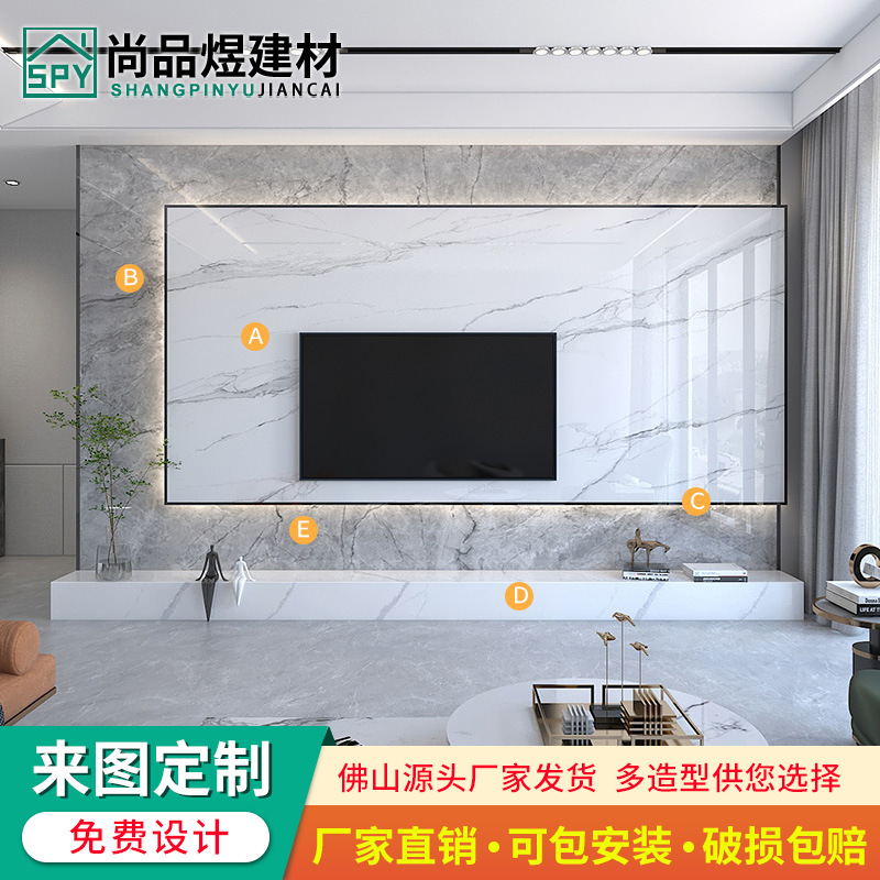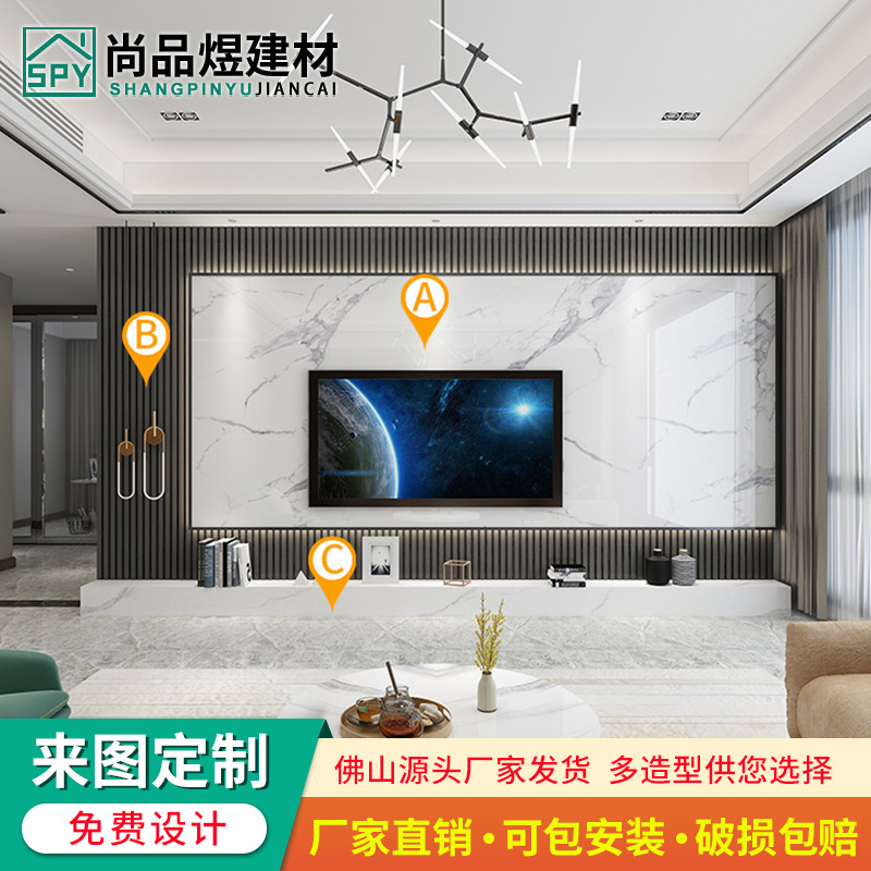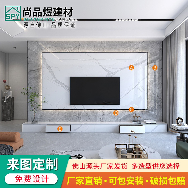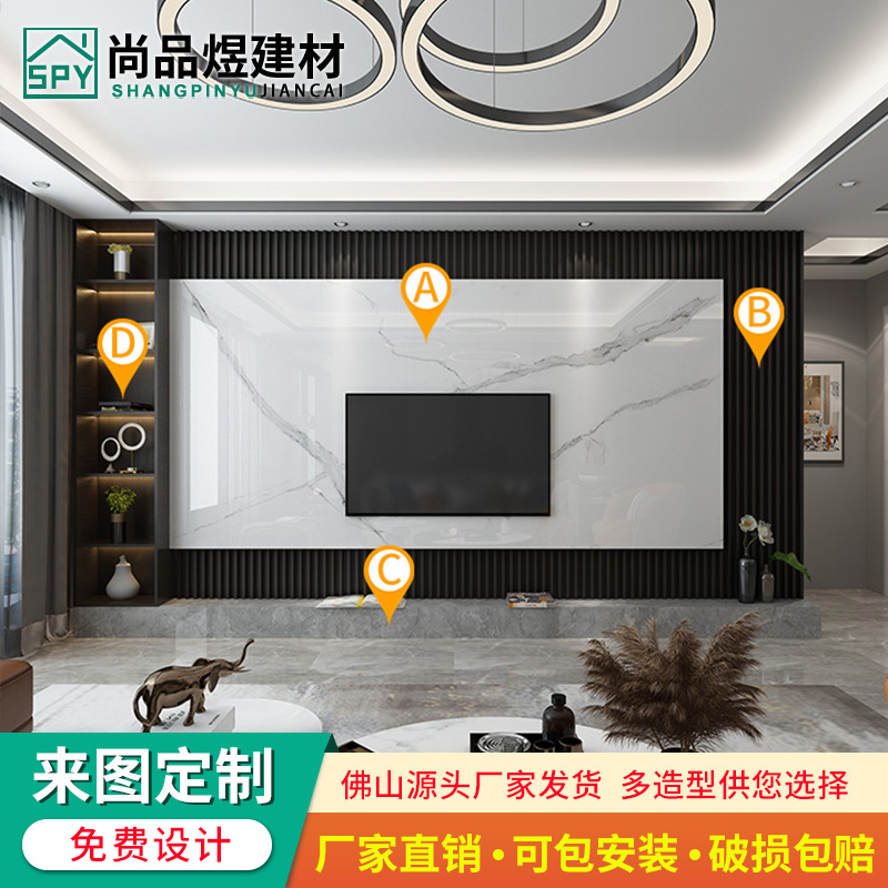 슬레이트 TV 배경 벽 인터넷 연예인 현대 간단한 대리석 정지 TV 캐비닛 조명 럭셔리 타일 영화 및 TV 벽 모양