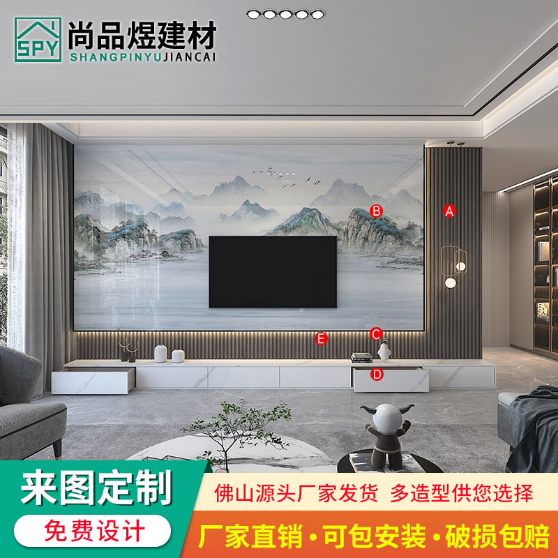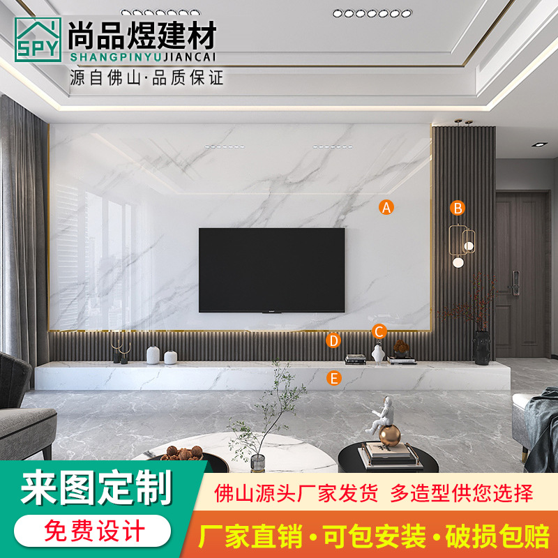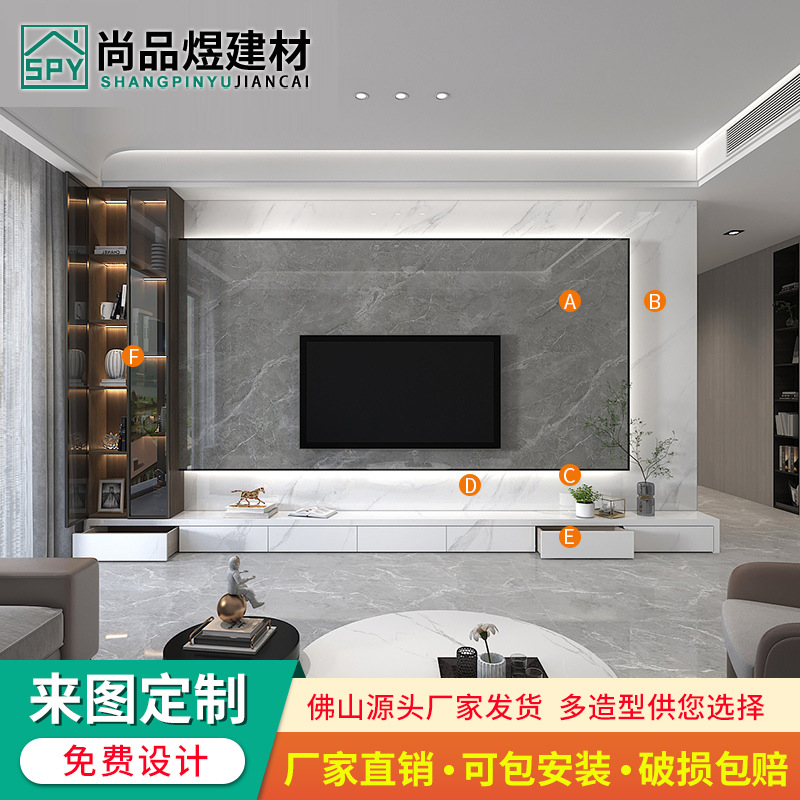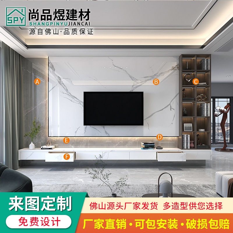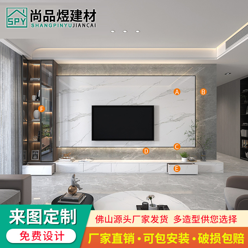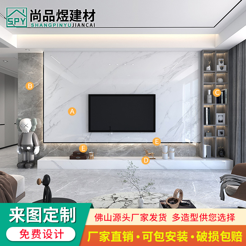 슬레이트 TV 배경 벽 인터넷 연예인 현대 간단한 대리석 정지 TV 캐비닛 조명 럭셔리 타일 영화 및 TV 벽 모양