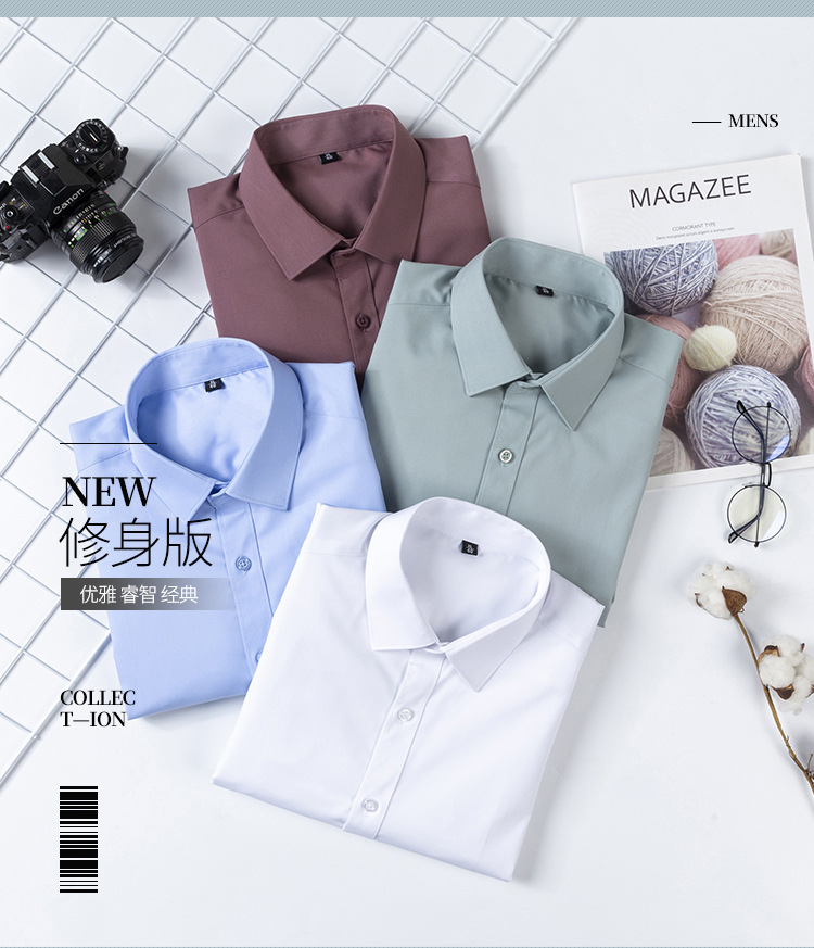 아마존 대나무 섬유 셔츠 남성용 긴팔 화이트 셔츠 남성용 원피스 탄성 비즈니스 블루 셔츠 플러스 사이즈 크로스 테두리 착용스토어 가기