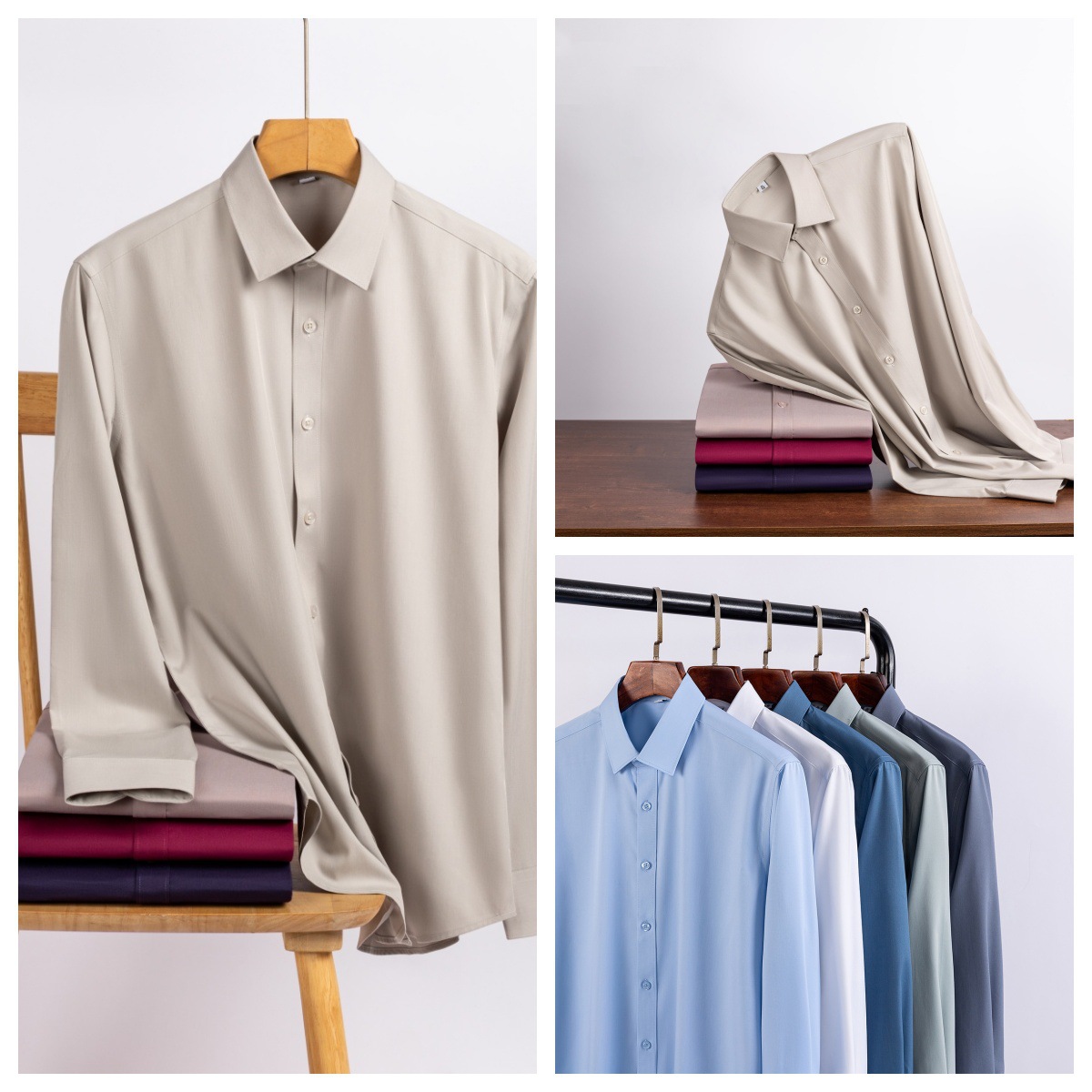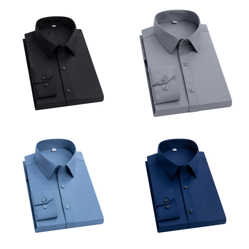아마존 대나무 섬유 셔츠 남성용 긴팔 화이트 셔츠 남성용 원피스 탄성 비즈니스 블루 셔츠 플러스 사이즈 크로스 테두리 착용