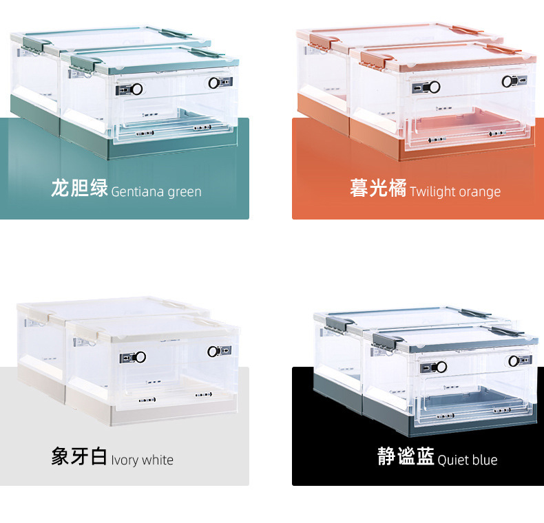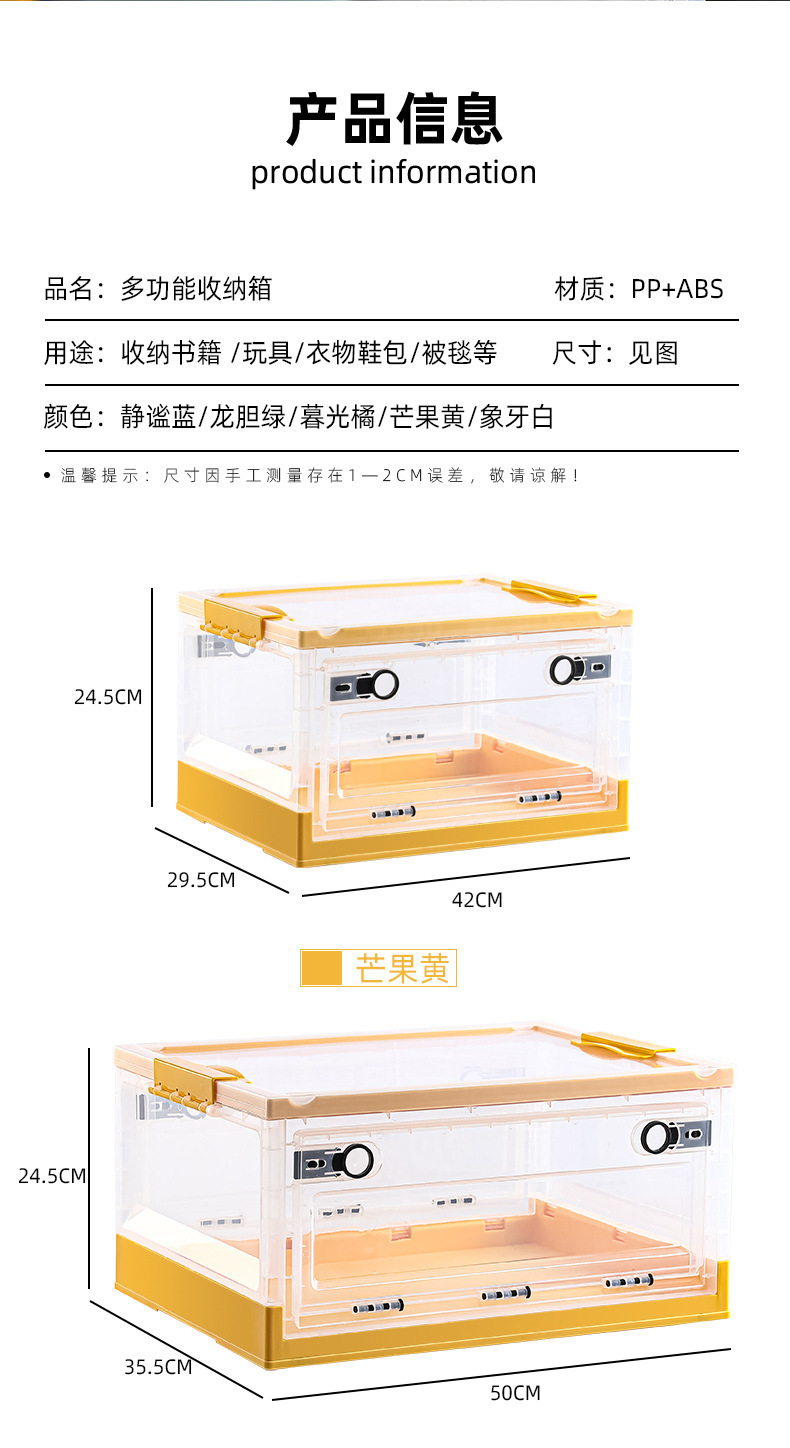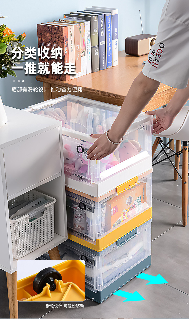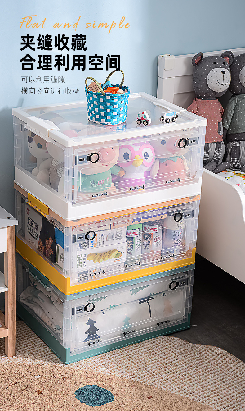 장난감 보관함 사이드 오픈형 어린이 스낵 박스 바퀴 가정용 투명 옷 마감 보관함 접이식