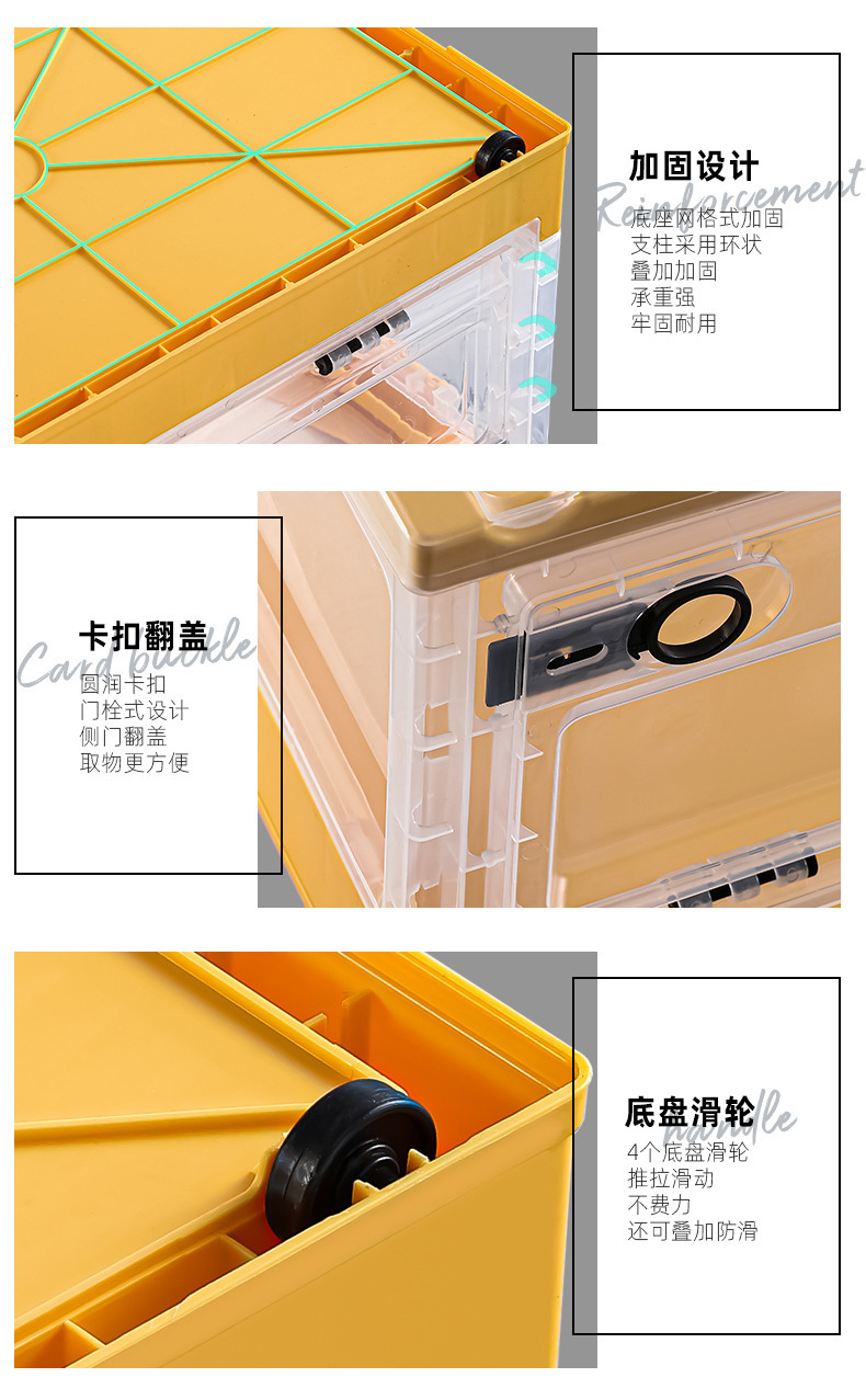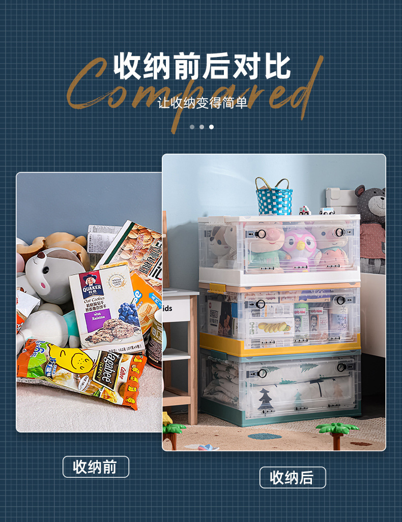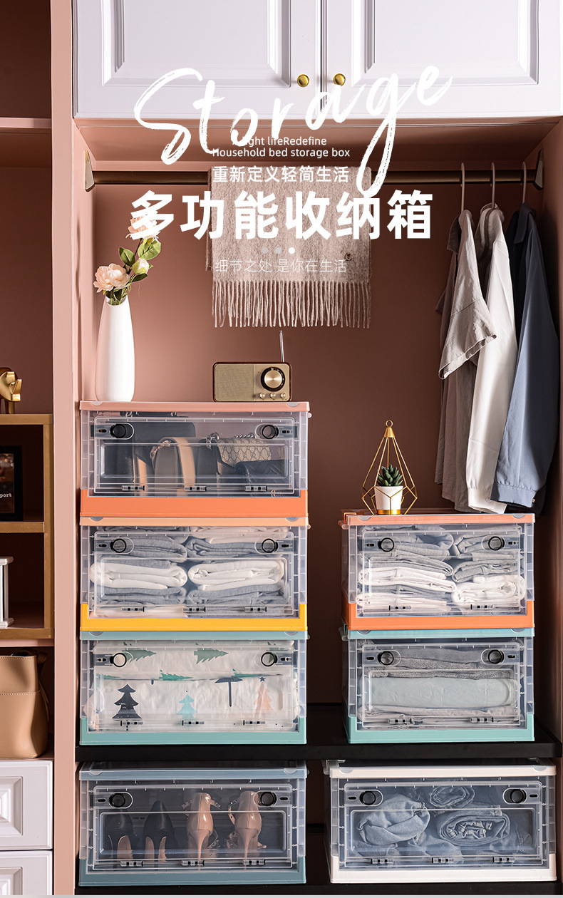 장난감 보관함 사이드 오픈형 어린이 스낵 박스 바퀴 가정용 투명 옷 마감 보관함 접이식스토어 가기