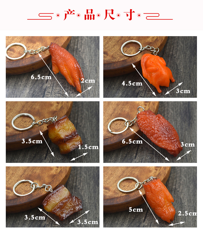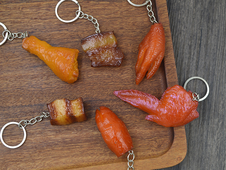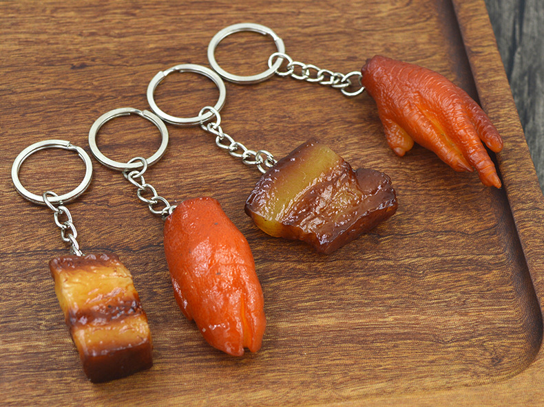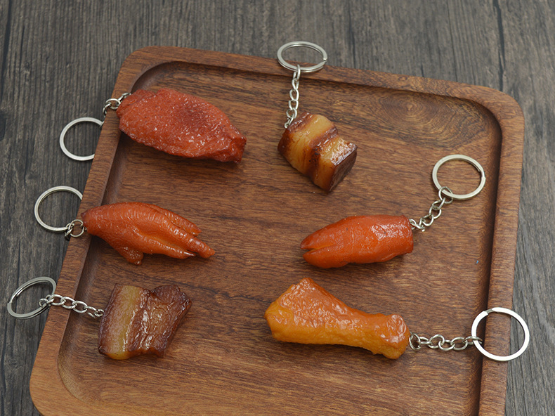 창의적인 시뮬레이션 음식 열쇠고리 PVC 모델 선물용 부드러운 고무 재질의 가짜 돼지고기 장식품 여행 기념품스토어 가기