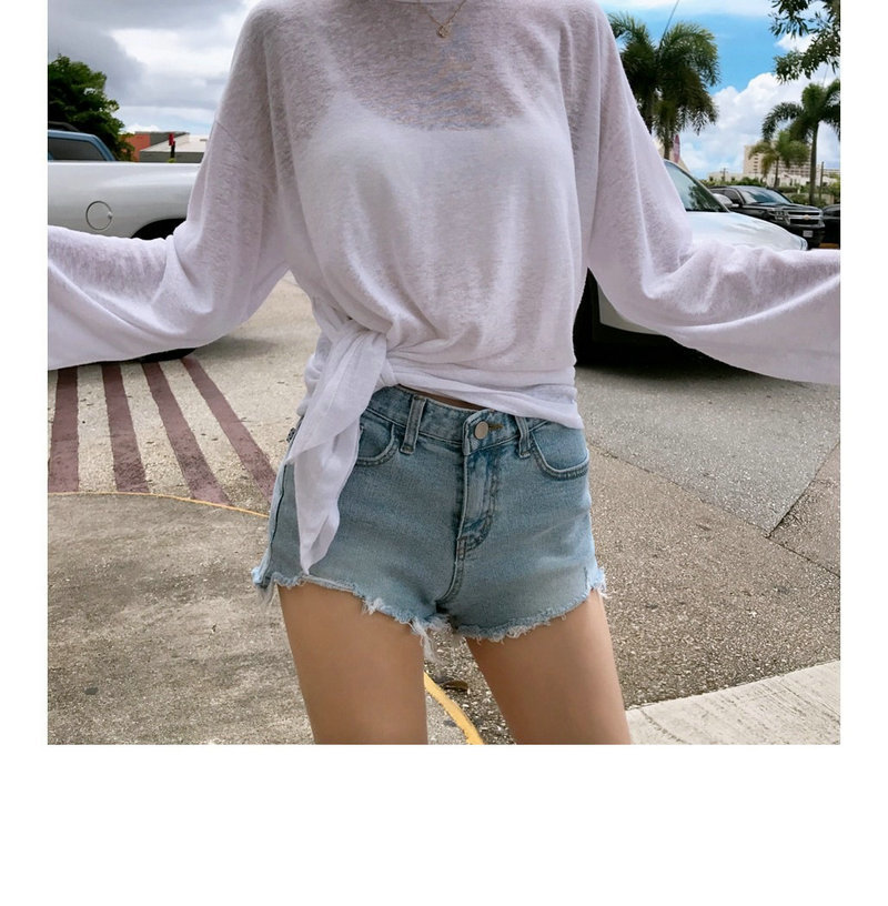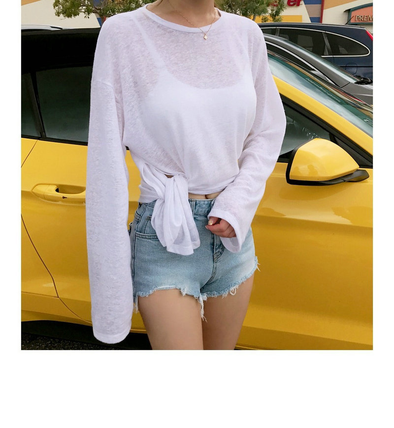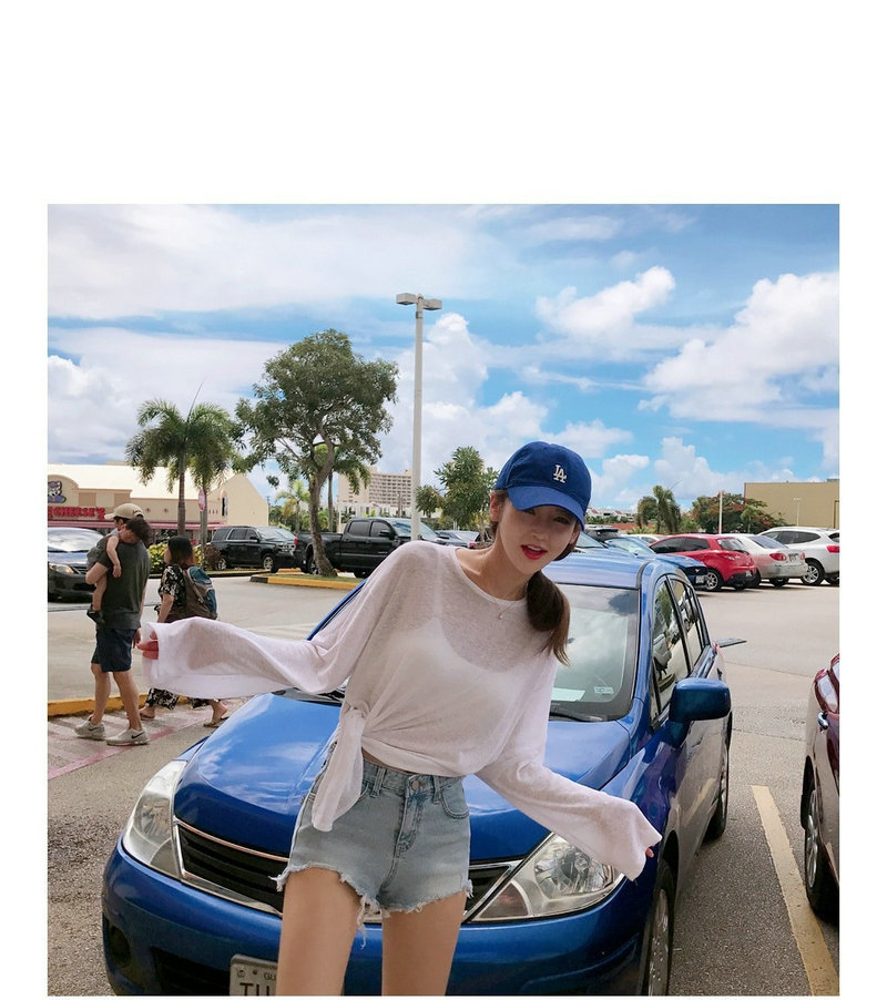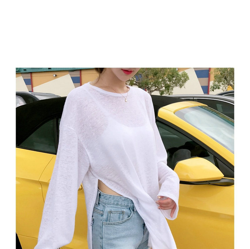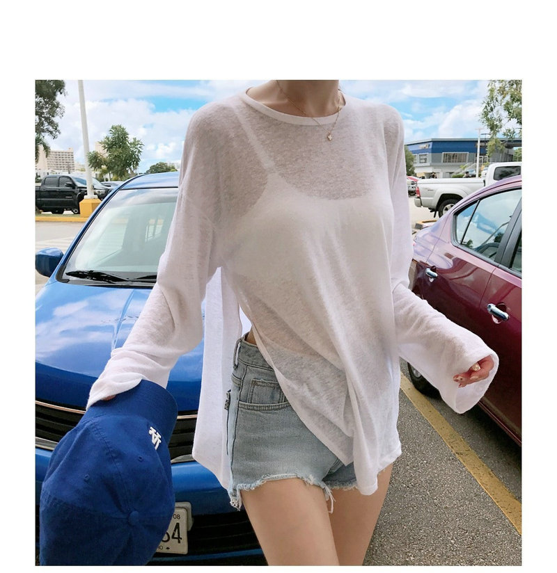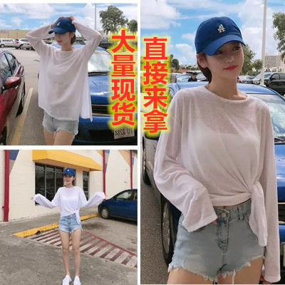 여름 얇은 요정 서양식 중공 풀오버 아이스 실크 니트 티셔츠 에어컨 자외선 차단제 블라우스 탑 여성용스토어 가기