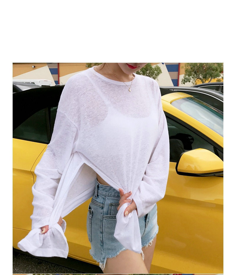 여름 얇은 요정 서양식 중공 풀오버 아이스 실크 니트 티셔츠 에어컨 자외선 차단제 블라우스 탑 여성용