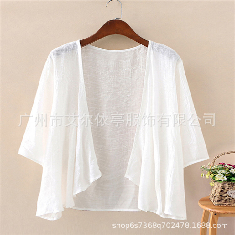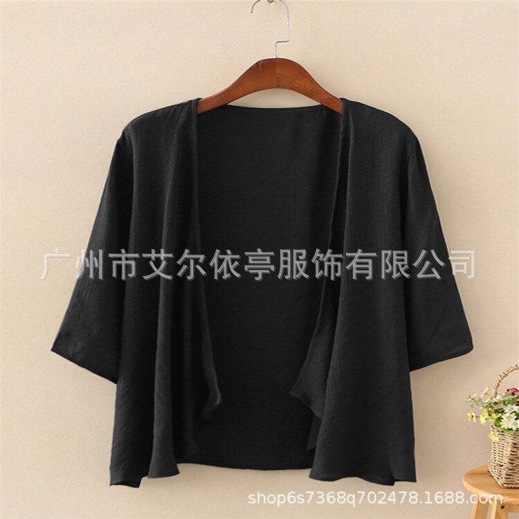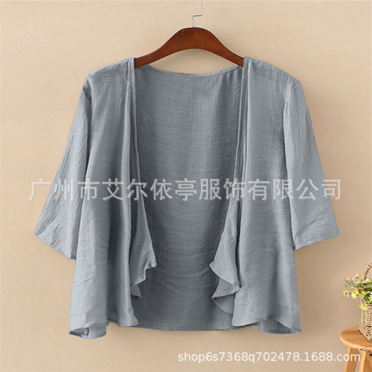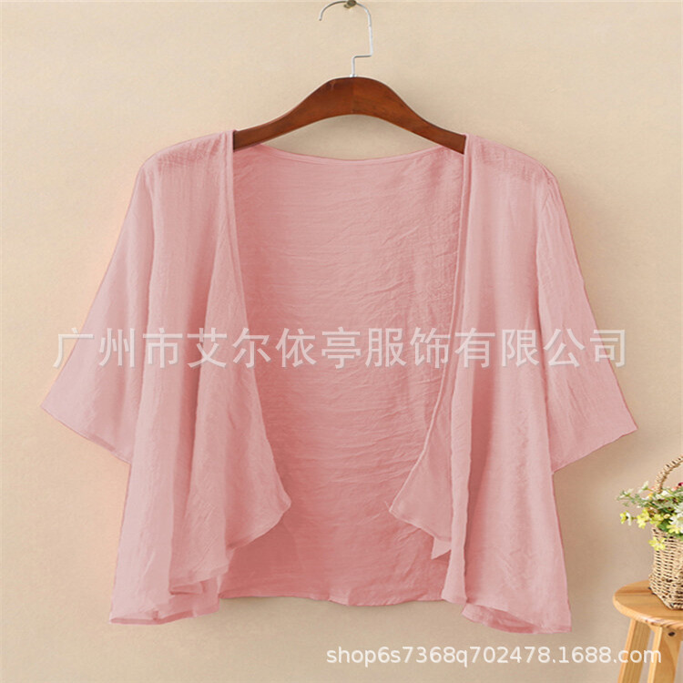 국경 간 무역 여성복 여름 가디건 단색 7부 소매 새롭고 달콤한 핑크색 플레어 소매 셔츠 편안하고 캐주얼한스토어 가기