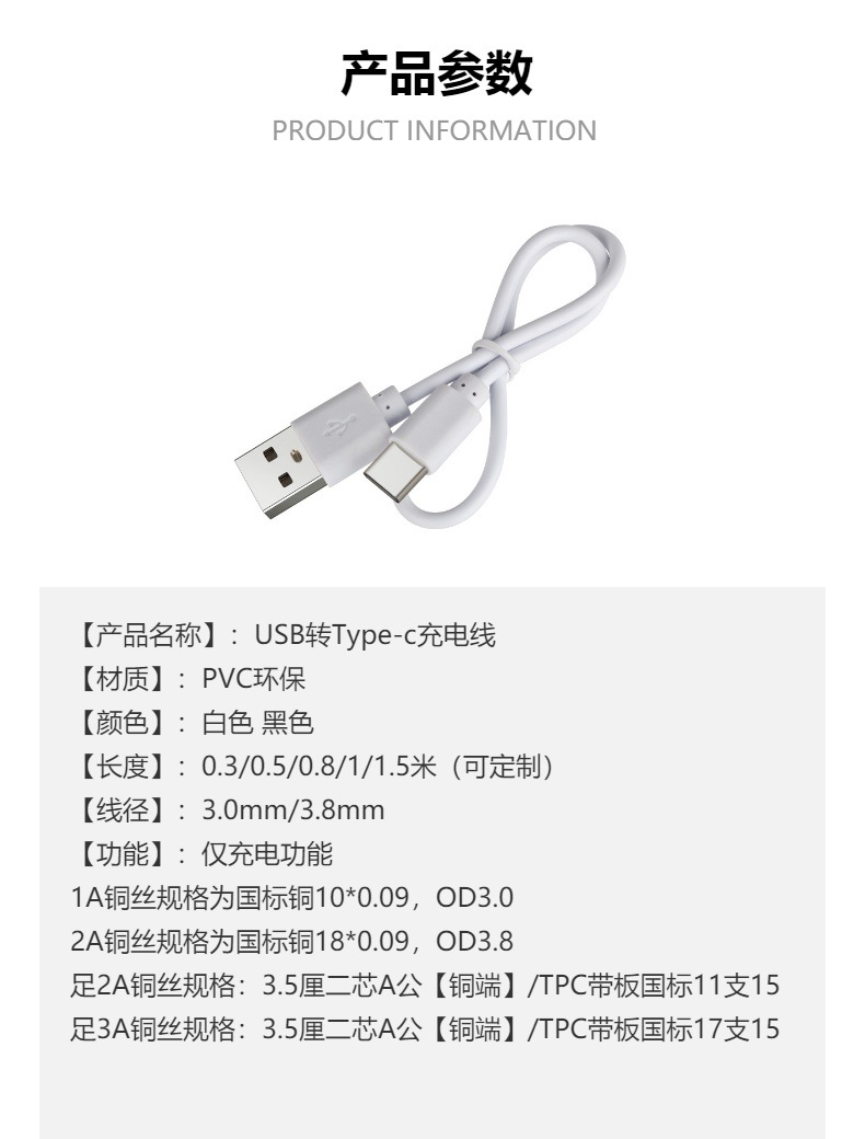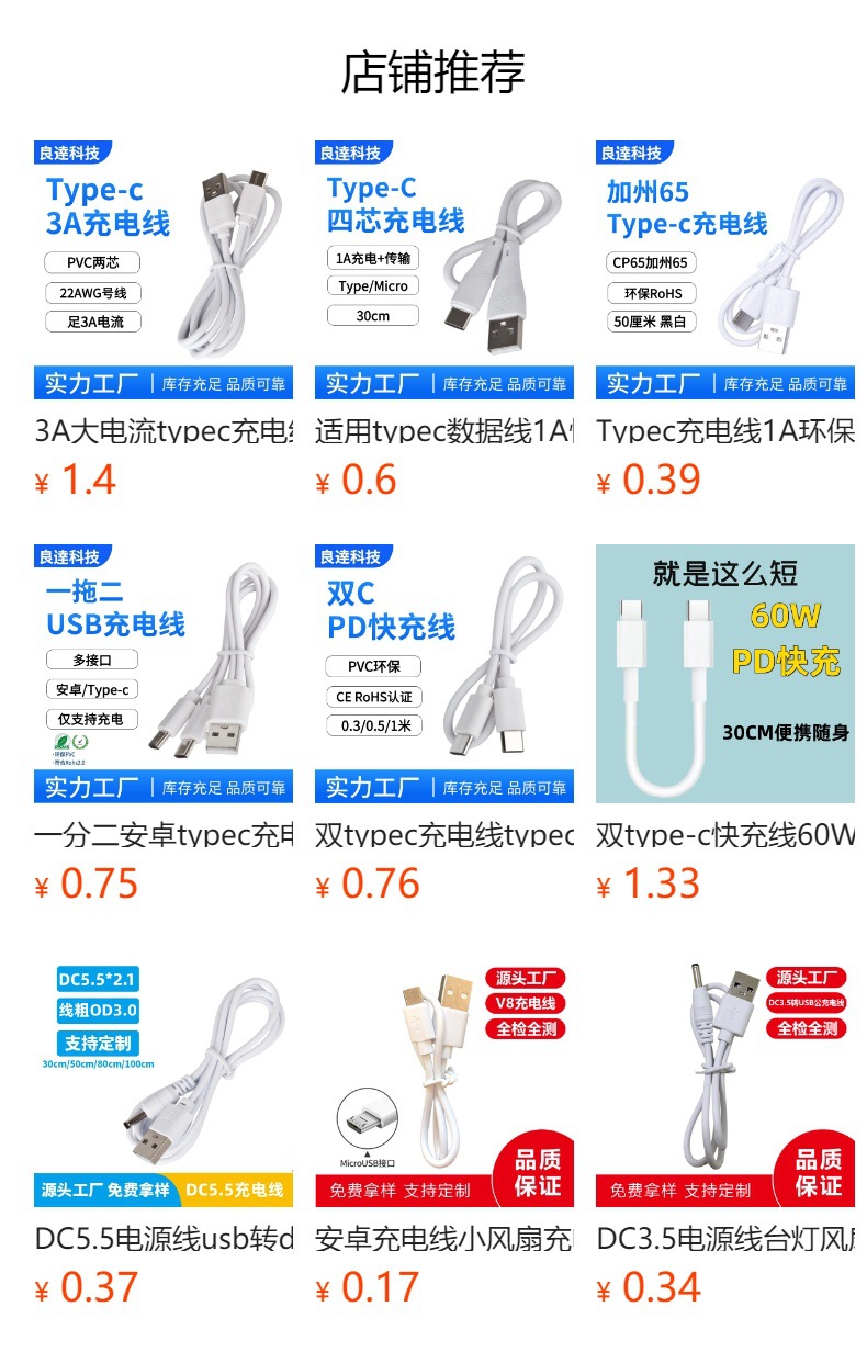제조업체 도매 타입-C 충전 케이블 2A 팬 연결 케이블 USB to 타입-C 충전 케이블 친환경 이중 코어 30cm스토어 가기