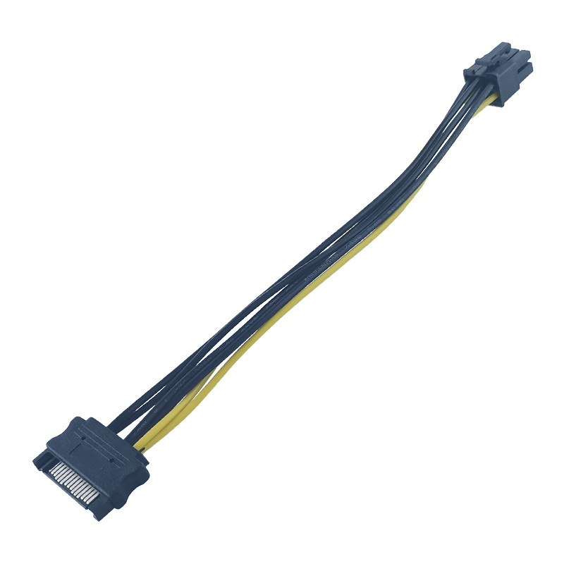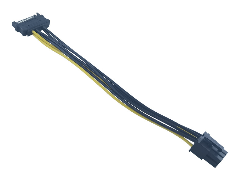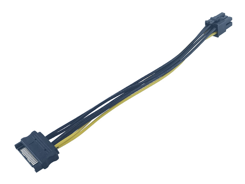 1.用于没有6PIN显卡供电口,多显卡时供电口不够用时,用单线电流不够。现在有了这种转换线就可以解决问题,直接将双SATA 15PIN电源转为显卡6PIN电源口,加大了显卡的电流。