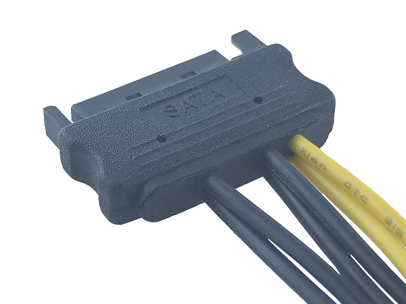 【产品接口】:一端是SATA公接口,另一端是6Pin母接口