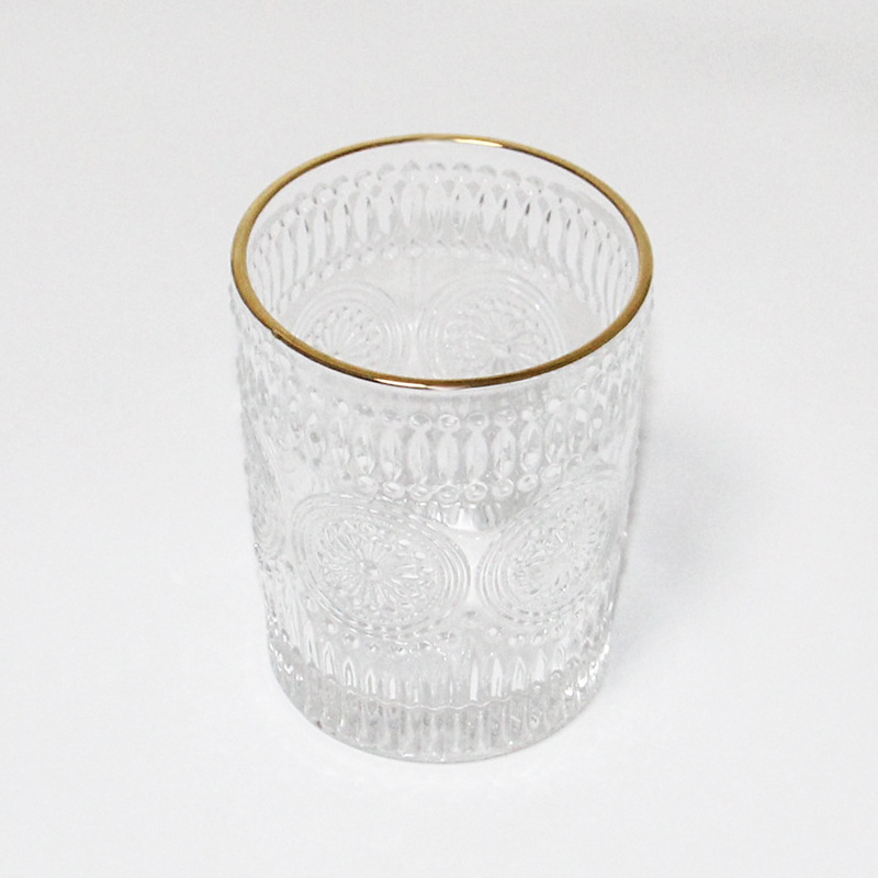 浮雕水杯欧式金边太阳花创意玻璃杯复古家用透明果汁杯伴手礼杯子