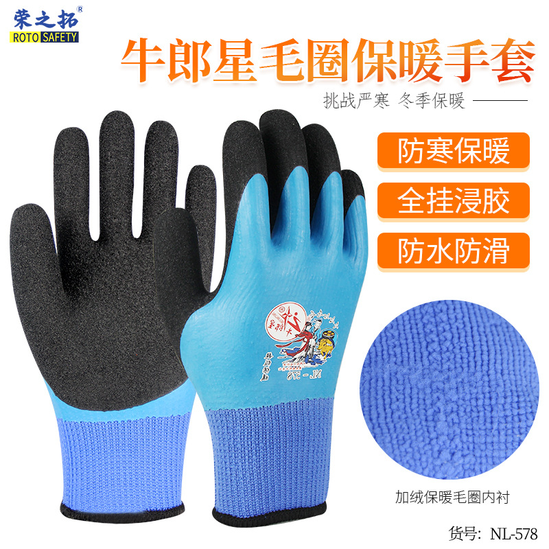 Dengsheng 439 겨울 방한 장갑 따뜻한 기모 서리 방지 두꺼운 방수 미끄럼 방지 디핑 반 매달려 노동 보호 장갑스토어 가기