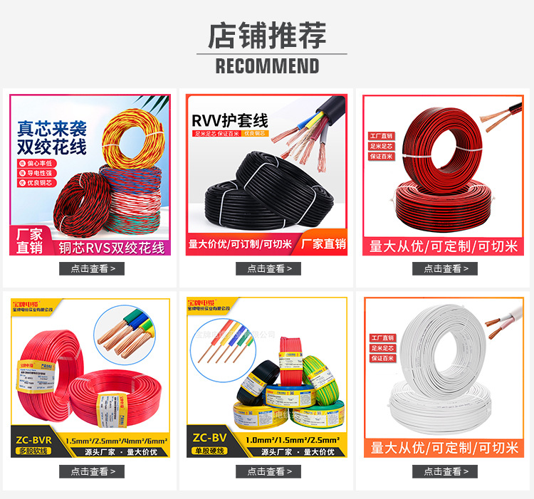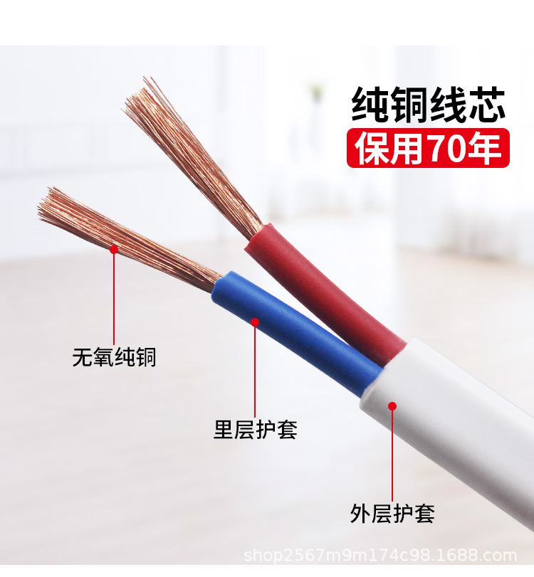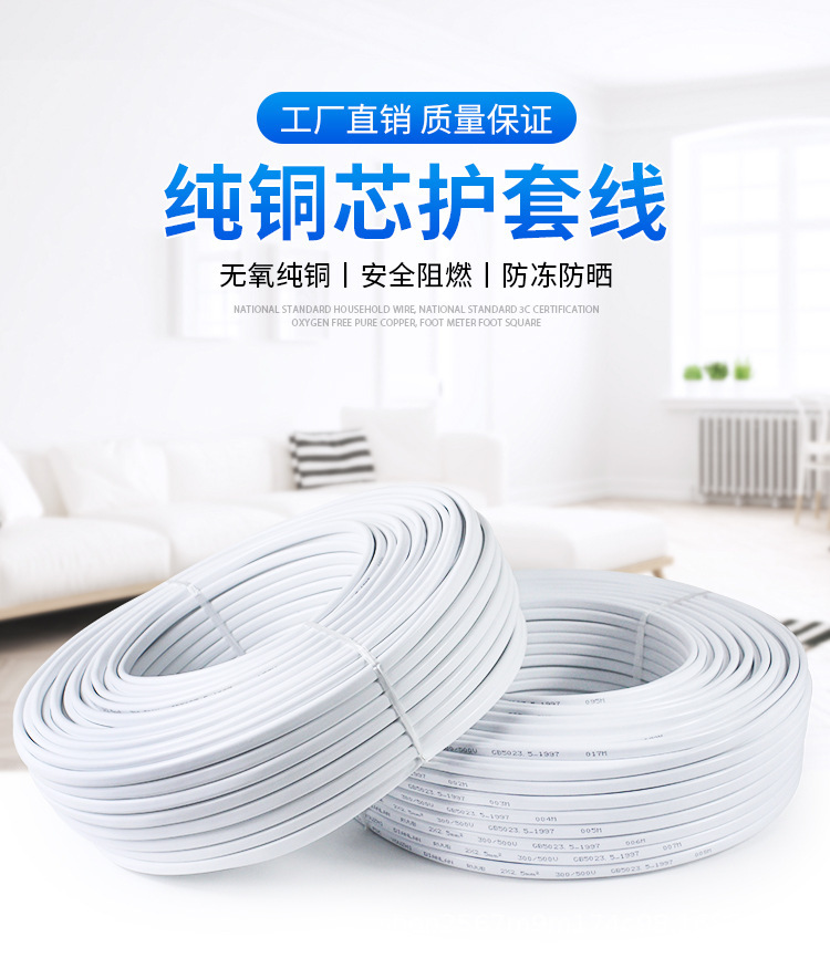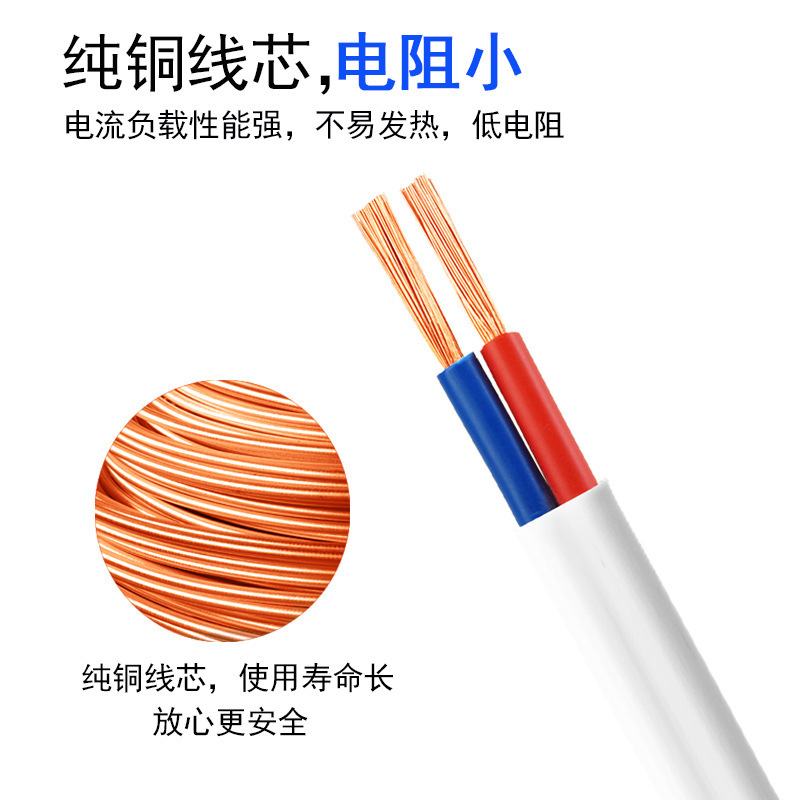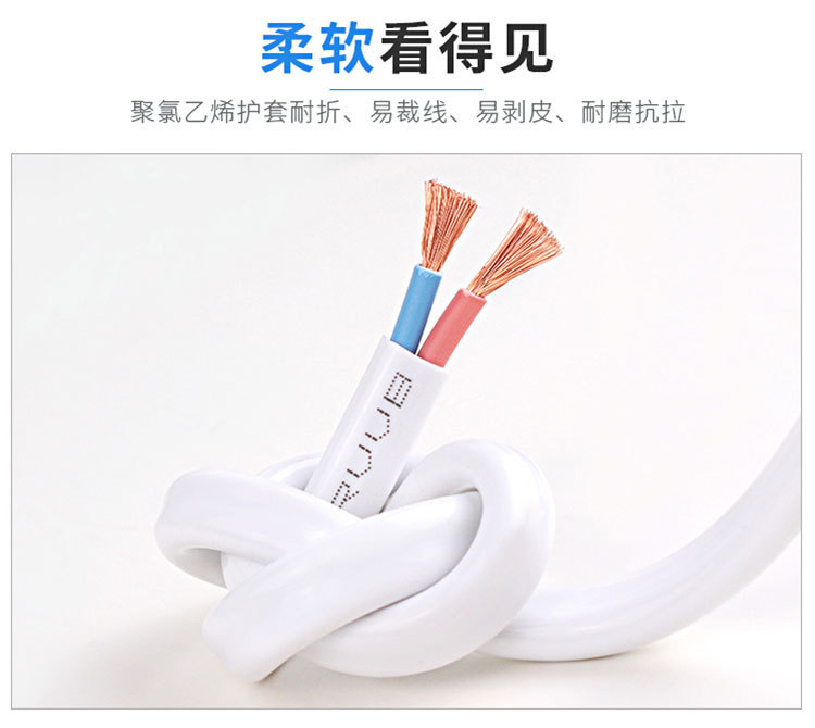 RVVB 전원 코드 국가 표준 병렬 라인 화이트 시스 라인 2 코어 가정용 0.50.75 1 1.5 2.5 플랫 소프트 코어스토어 가기