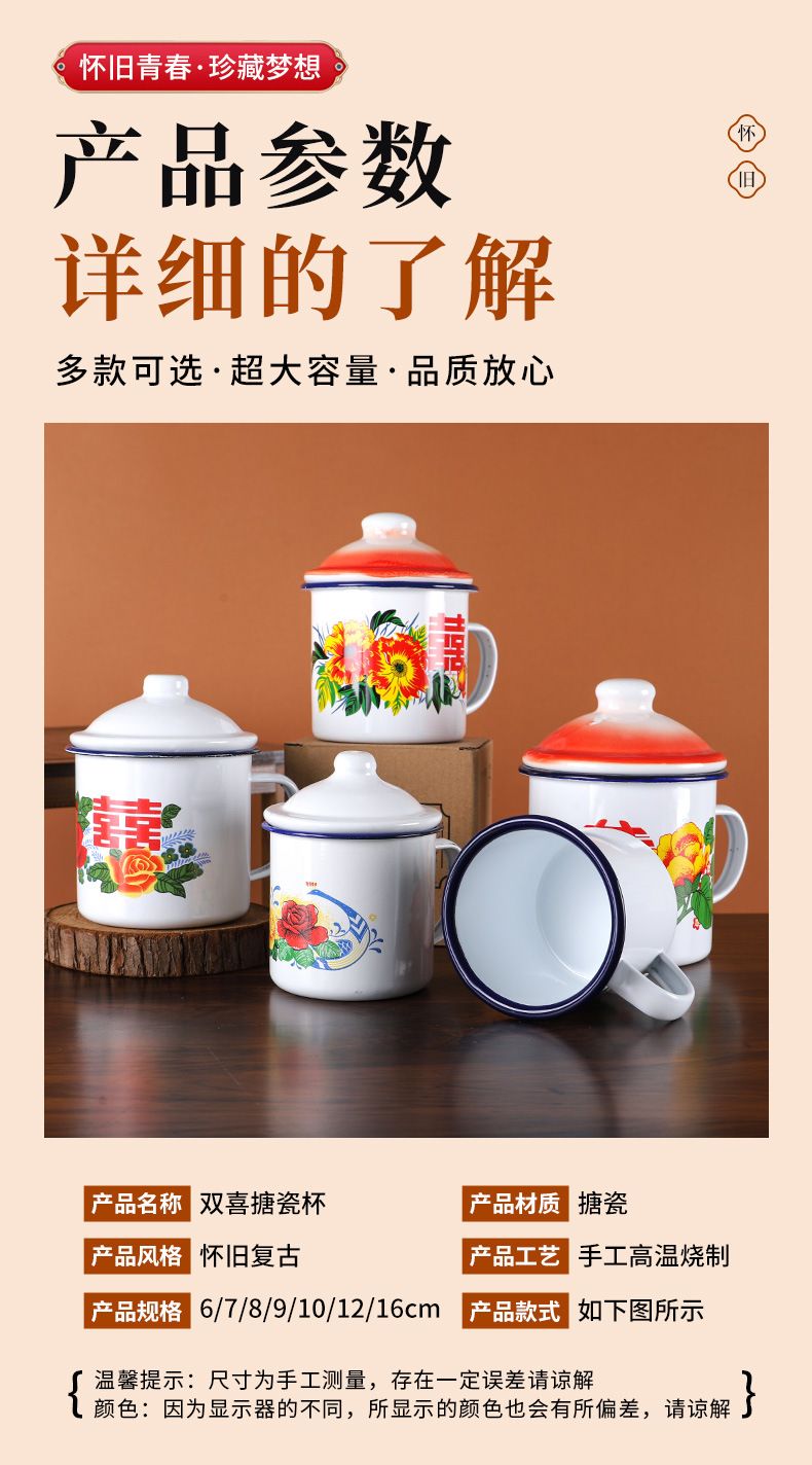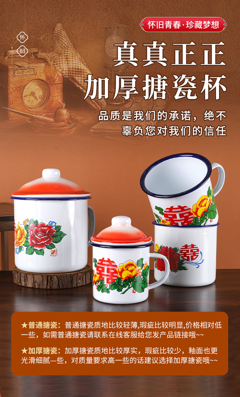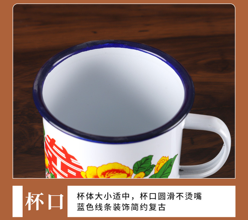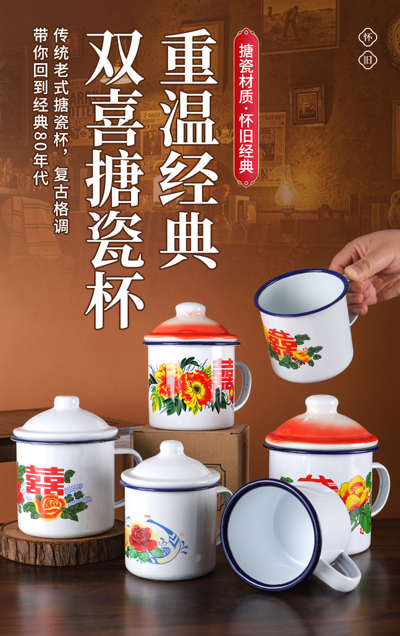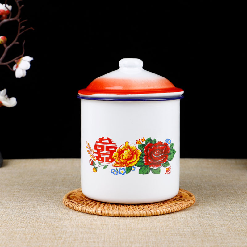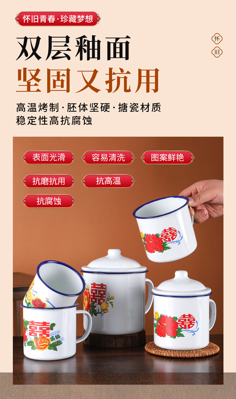 구식 이중 행복 에나멜 컵 클래식 꽃 커버 뚜껑이있는 컵 결혼식 차 항아리 대용량 머그잔 로고 인쇄 가능스토어 가기