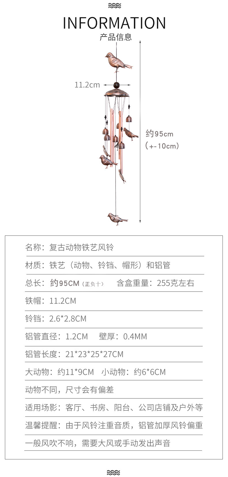 유럽과 미국 복고풍 금속 나비 거북이 말 철 바람 차임 홈 안뜰 구리 야외 교수형 장식품 올빼미 동물스토어 가기