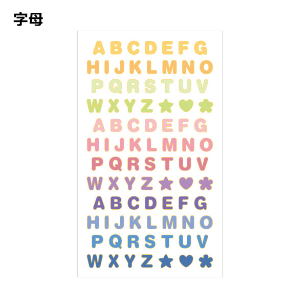 A57 한국어 컬러 골드 에지 영숫자 스티커 기하학 사랑 그래픽 핸드북 장식 종이 소재/2 팩