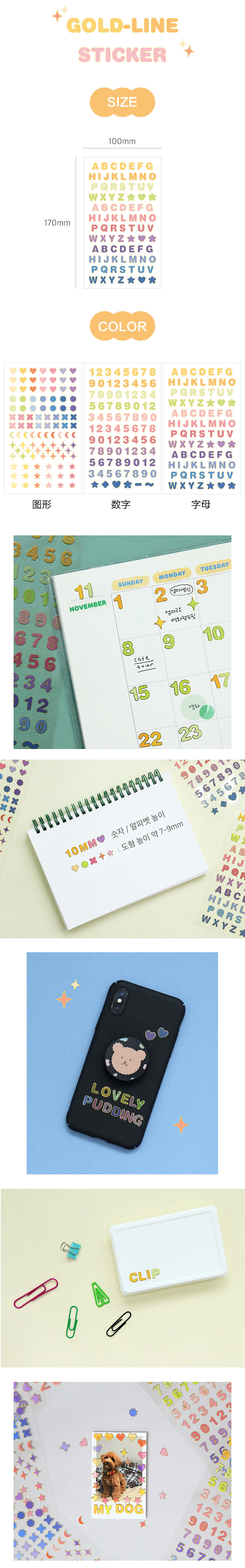 A57 한국어 컬러 골드 에지 영숫자 스티커 기하학 사랑 그래픽 핸드북 장식 종이 소재/2 팩스토어 가기