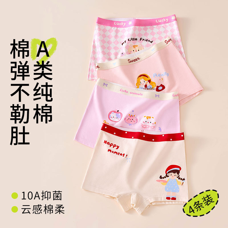 어린이 속옷, 여아 순면 사각팬티, 도매 귀여운 중대형 아동용 A급 항균 여아 반바지 사각팬티스토어 가기