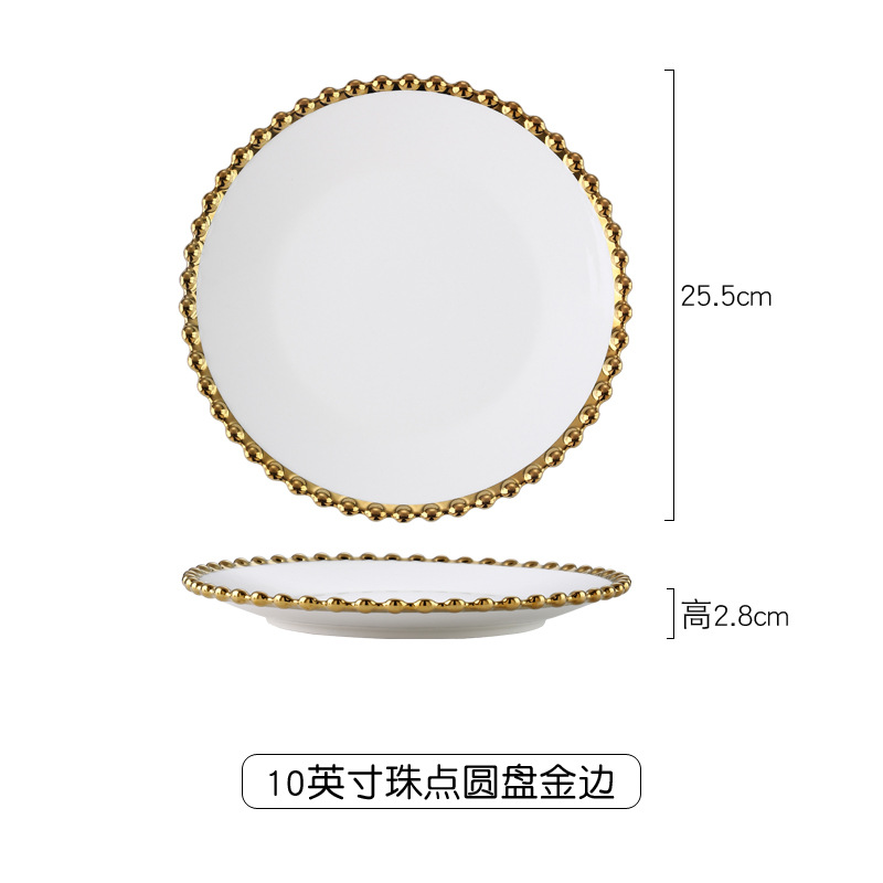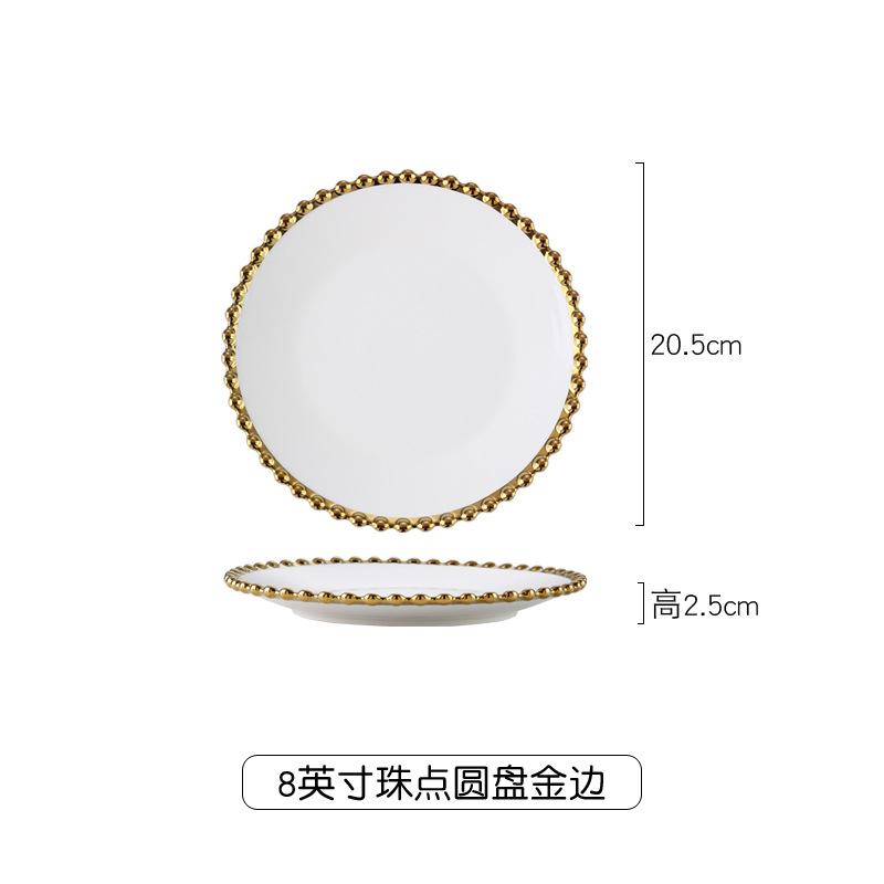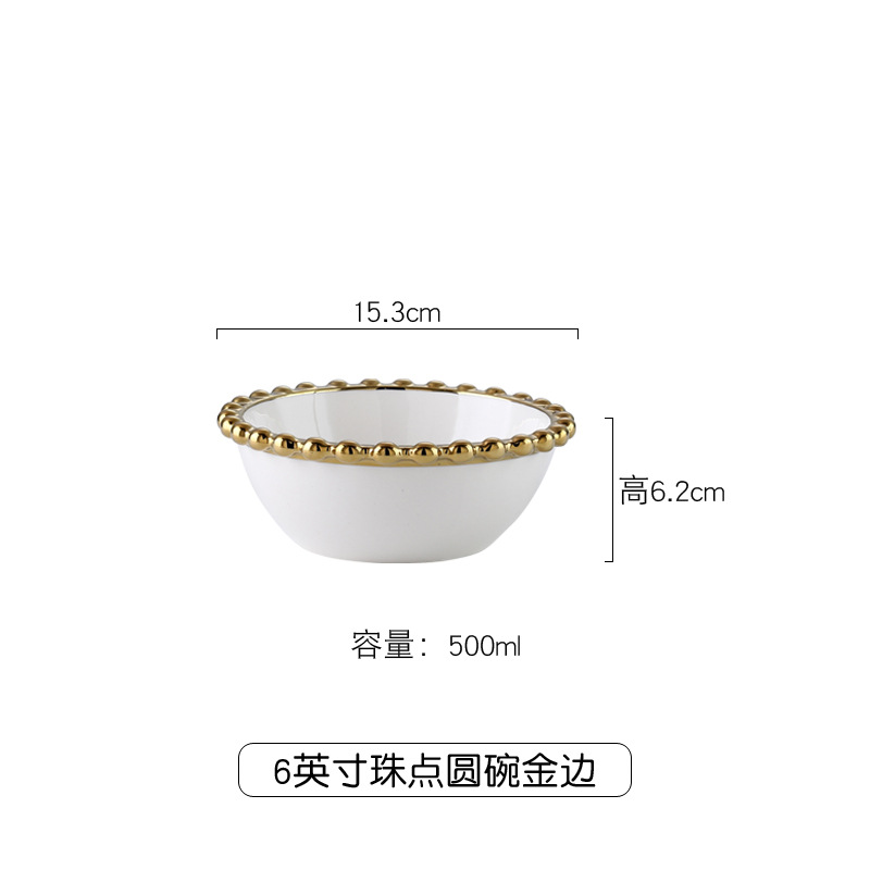 【品名】金边珠点盘碗
