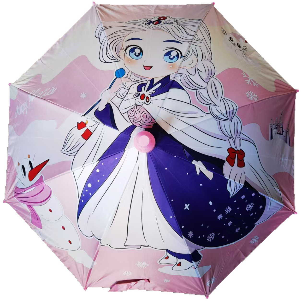 검은 고무 대형 우산 만화 우산 방수 우산 얼음과 눈 공주 자동 어린이 우산 인쇄 초등학생 우산 도매