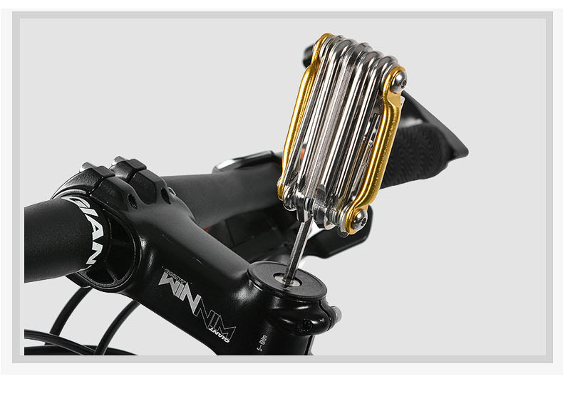 非常实用的一款工具,比目前市面上的带补胎工具的那套要划算了很多!一个截链器,****上质量好些的起码要15元,12元的顶针有些都是塑料的,很不耐用。这款工具不仅有几个常用规格的内六角扳手,还有T25,碟刹车螺丝很多要用这个型号的工具。工具钢材硬度好,体积小,使用方便,出门必备!!工具在手,骑车无忧!