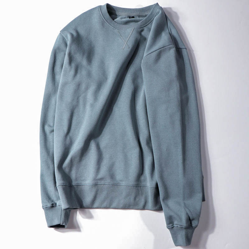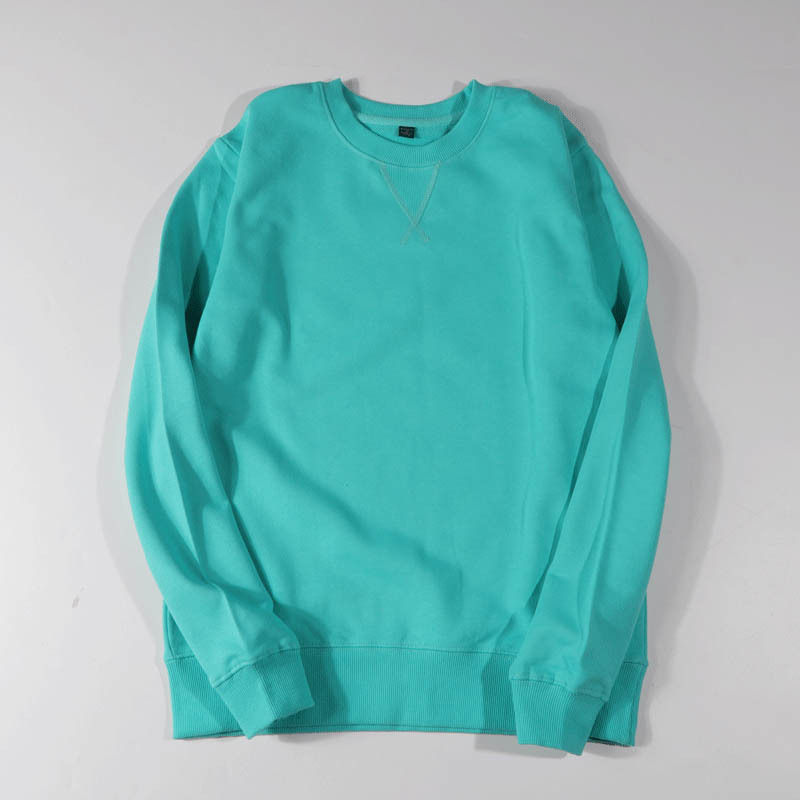 340g 일본 헤비급 순면 솔리드 컬러 레이크 블루 워터 그린 느슨한 민트 그린 기본 커플 남녀 라운드 넥 조끼