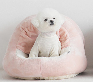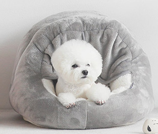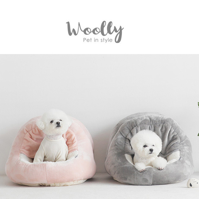 공장 재고 한 울리 커튼 플러시 편안한 반 폐쇄 애완 동물 사육장 고양이 개 침대 사계절스토어 가기