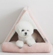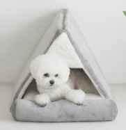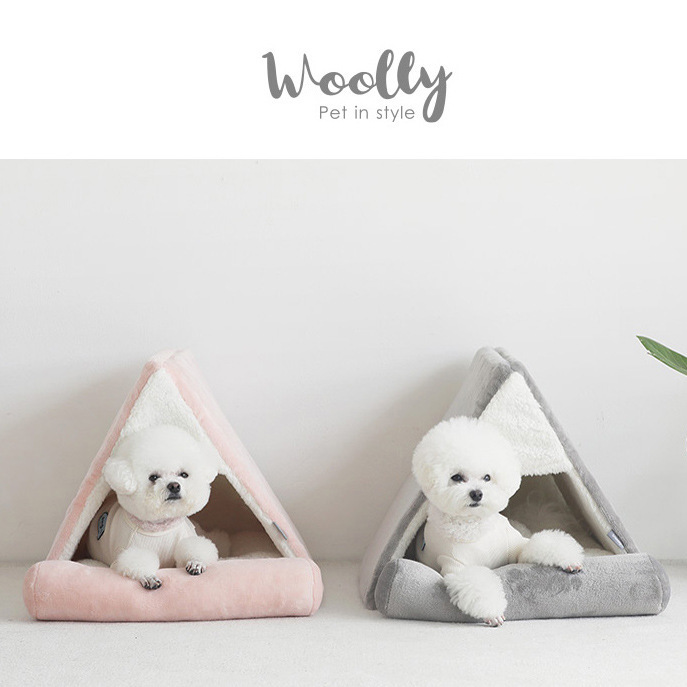 공장 재고 한 울리 커튼 플러시 편안한 반 폐쇄 애완 동물 사육장 고양이 개 침대 사계절