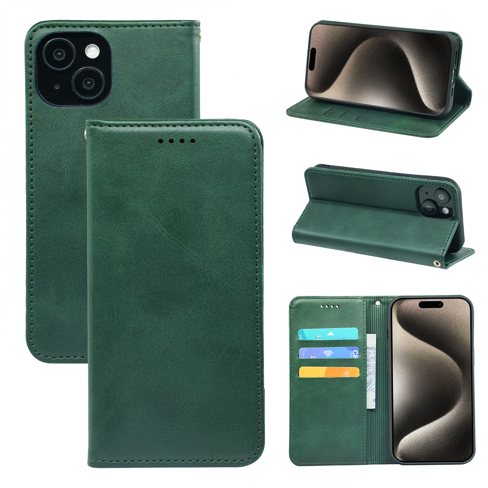 삼성 갤럭시 S24FE/S23/S22/S21 휴대폰 케이스에 적합, 송아지 가죽 강력 자석 휴대폰 가죽 케이스, 풀 커버