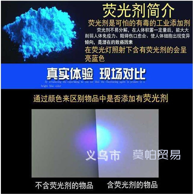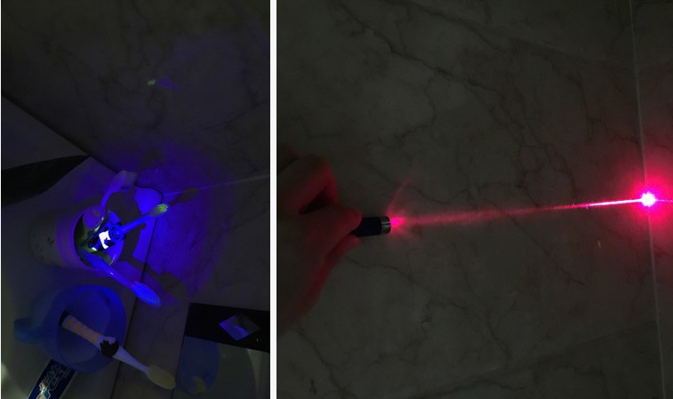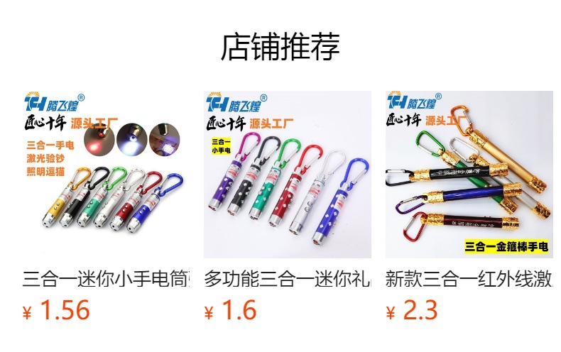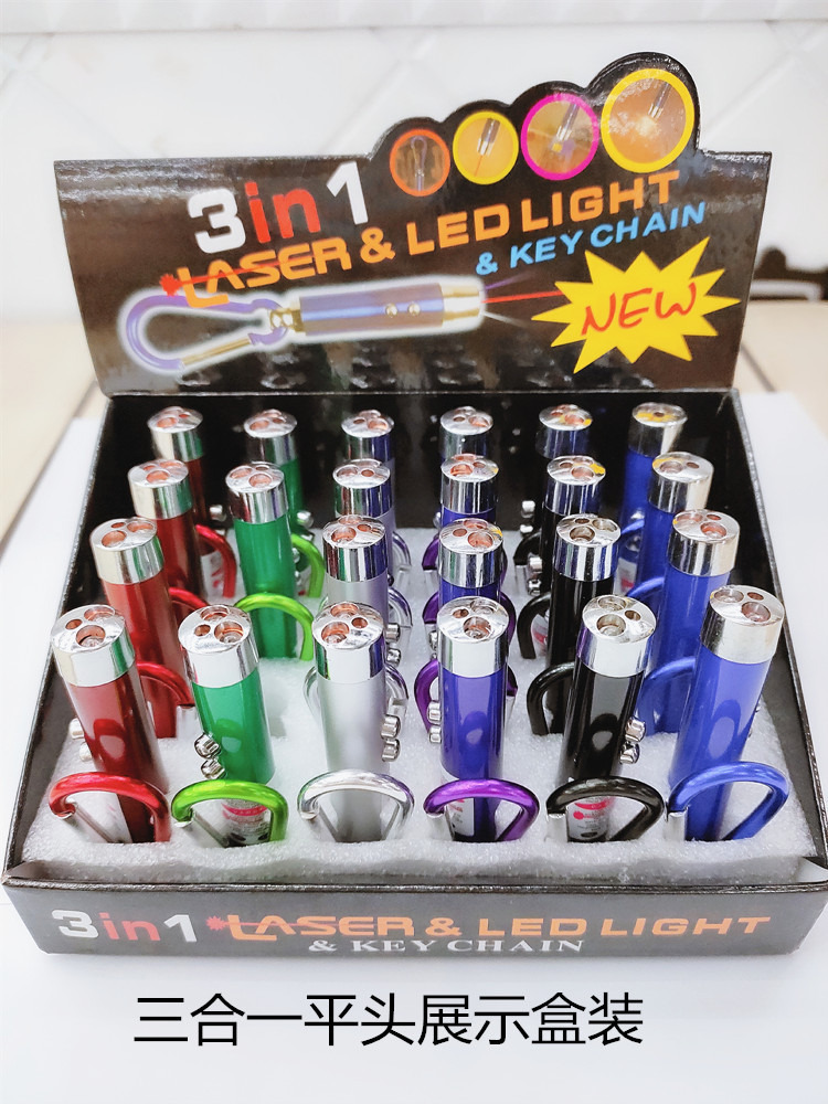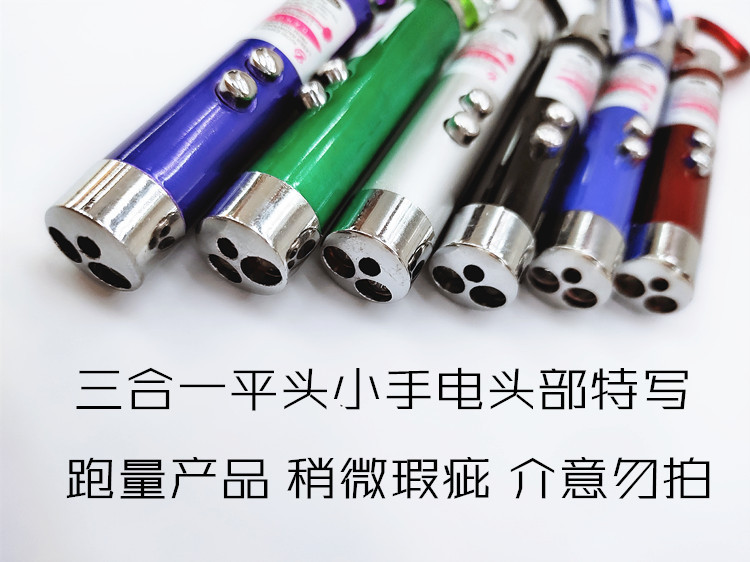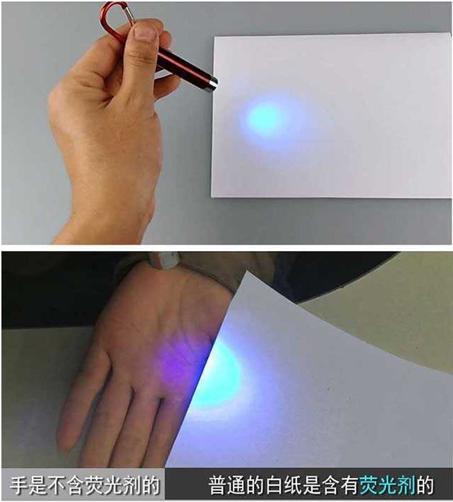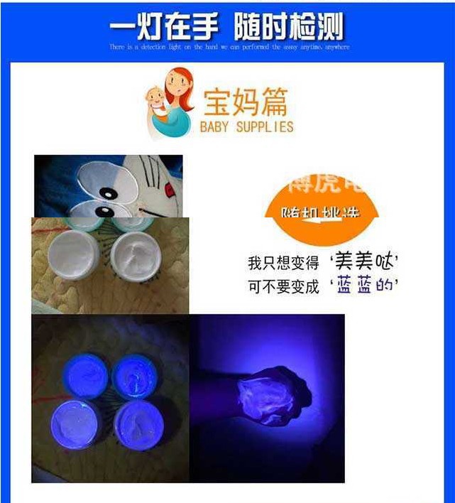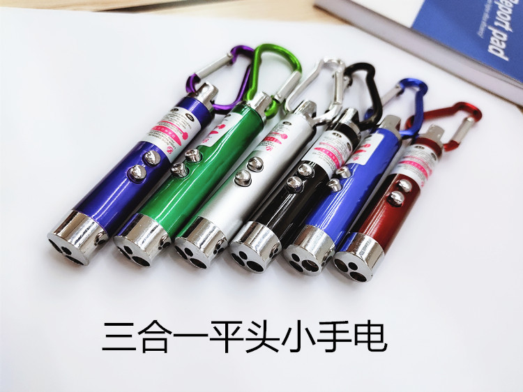 功能:红外线激光指引方向,LED白光照明可当手电,紫光验钞防假钞,闪光警示周边。用两个按钮开关,三颗AG13电子。正面能照出人民币清晰荧光, 又能照出人民币背面金丝线发光,假钞没有水印或水印模糊,反面线条不会发光.是大家验别真假人民币的好帮手,外型小巧,携带方便,实用,是您生活日用中必不可少的电子产品!花最小的钱减少收到假钞的损失