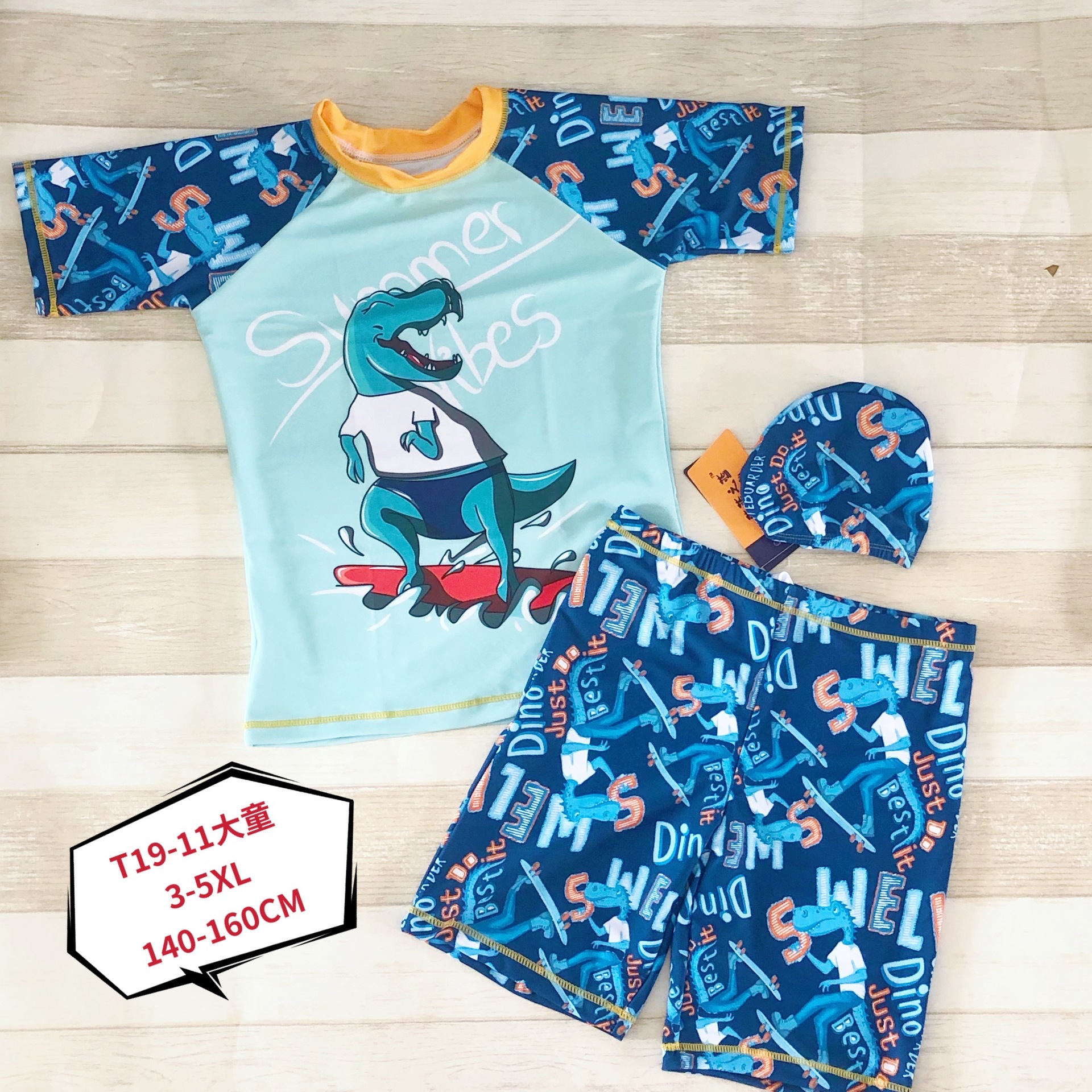 2024 플러스 사이즈 어린이 수영복 분할 후드 수영복 새로운 수영복 세트 공룡 반팔 만화 인쇄스토어 가기