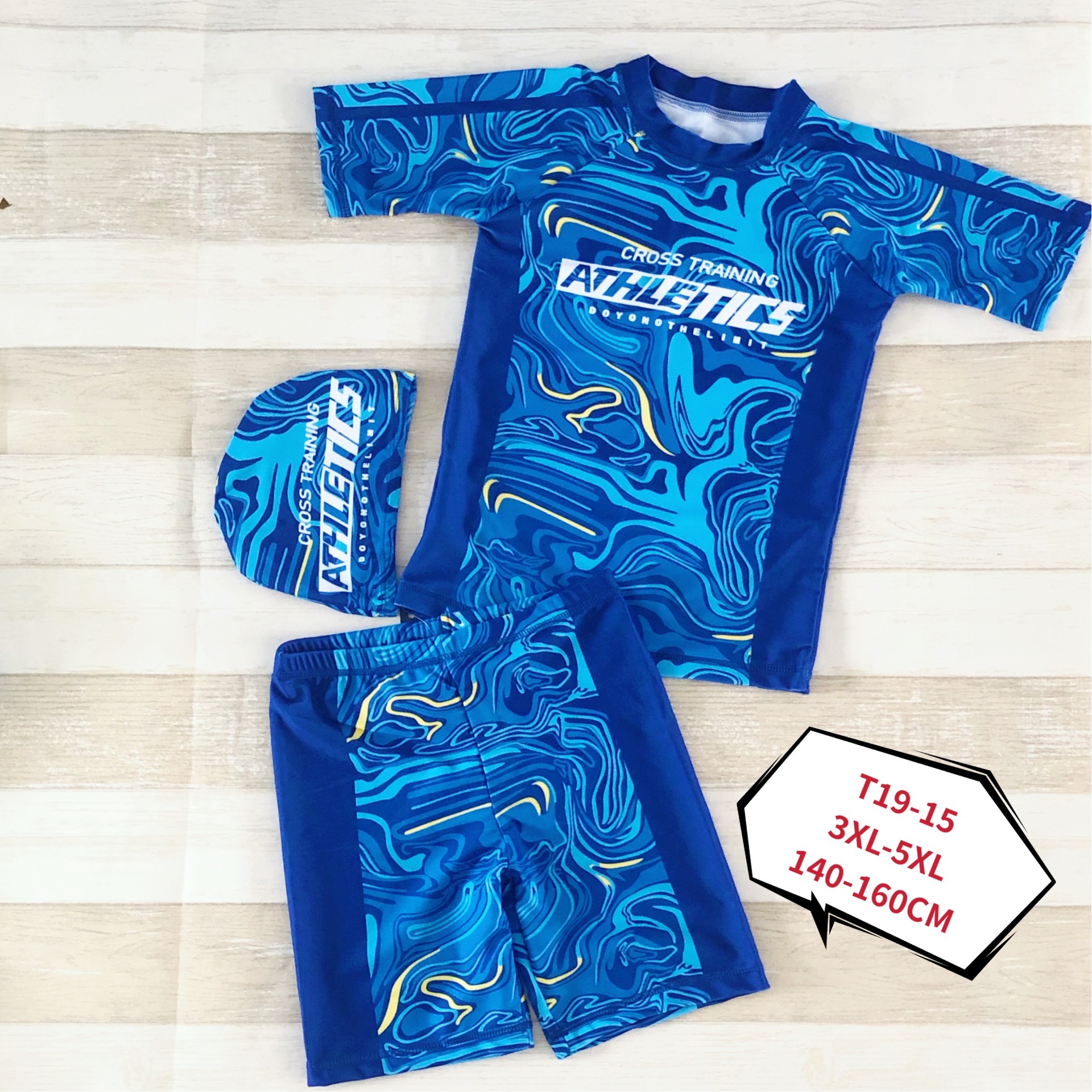 2024 플러스 사이즈 어린이 수영복 분할 후드 수영복 새로운 수영복 세트 공룡 반팔 만화 인쇄