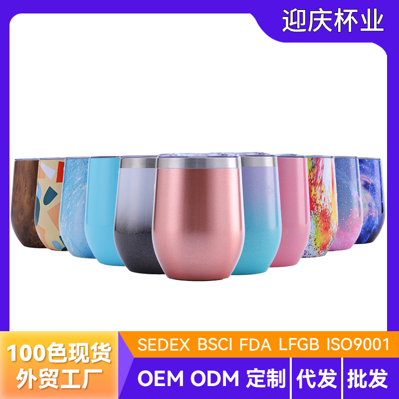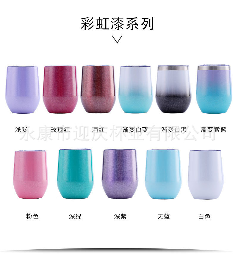 소스 공장 아마존 달걀 껍질 컵 304 스테인레스 스틸 레드 와인 잔 레인보우 페인트 절연 U-배꼽 계란 컵