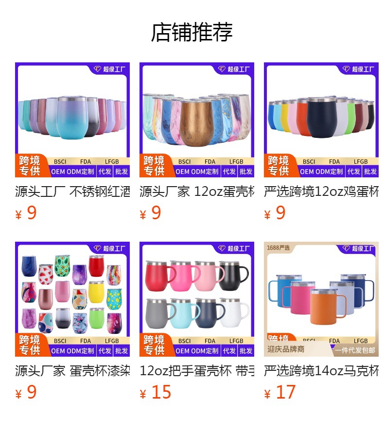 소스 공장 아마존 달걀 껍질 컵 304 스테인레스 스틸 레드 와인 잔 레인보우 페인트 절연 U-배꼽 계란 컵스토어 가기