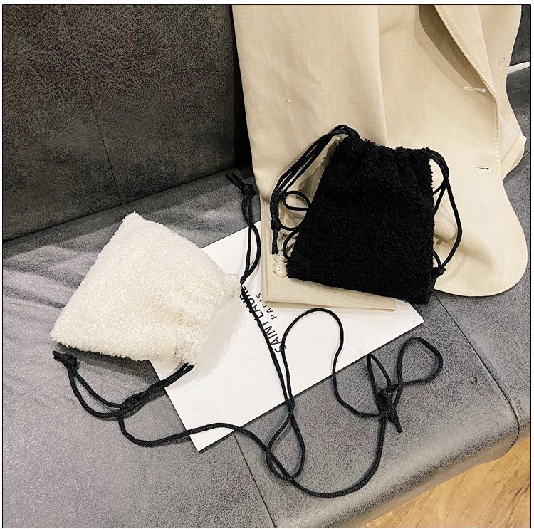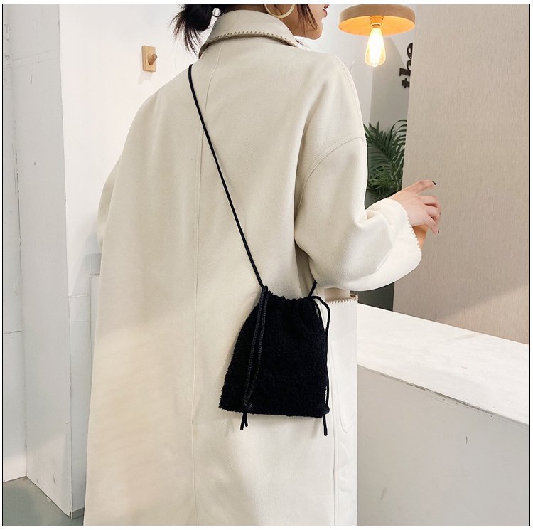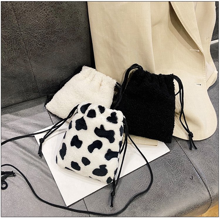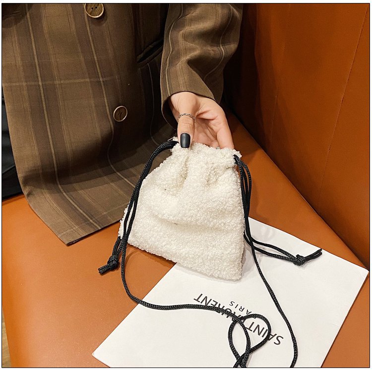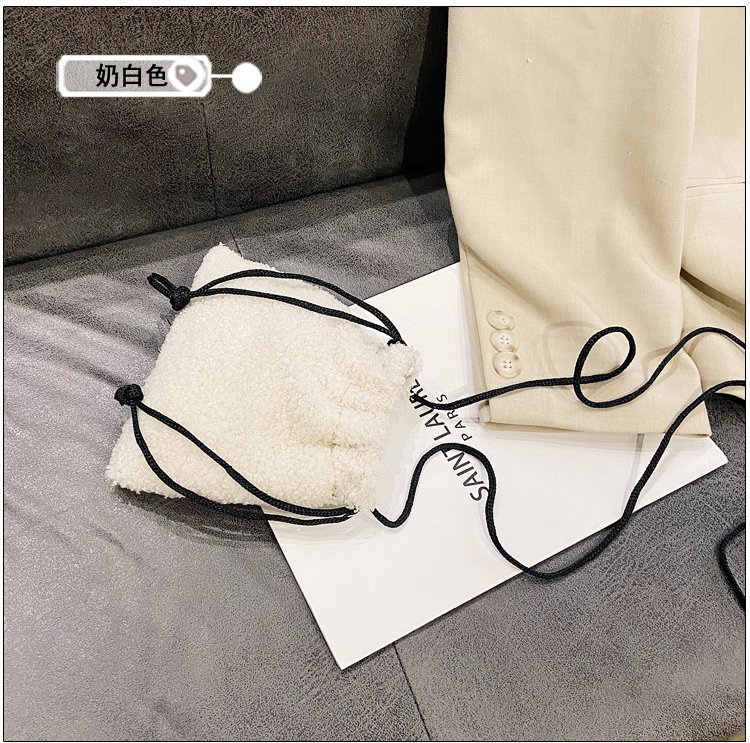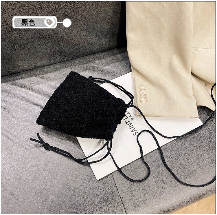 가을과 겨울 봉제 세로 휴대 전화 가방 졸라매는 끈 귀여운 크로스 바디 미니 가방 한국식 모피 학생 소프트 귀여운 싱글 숄더 백