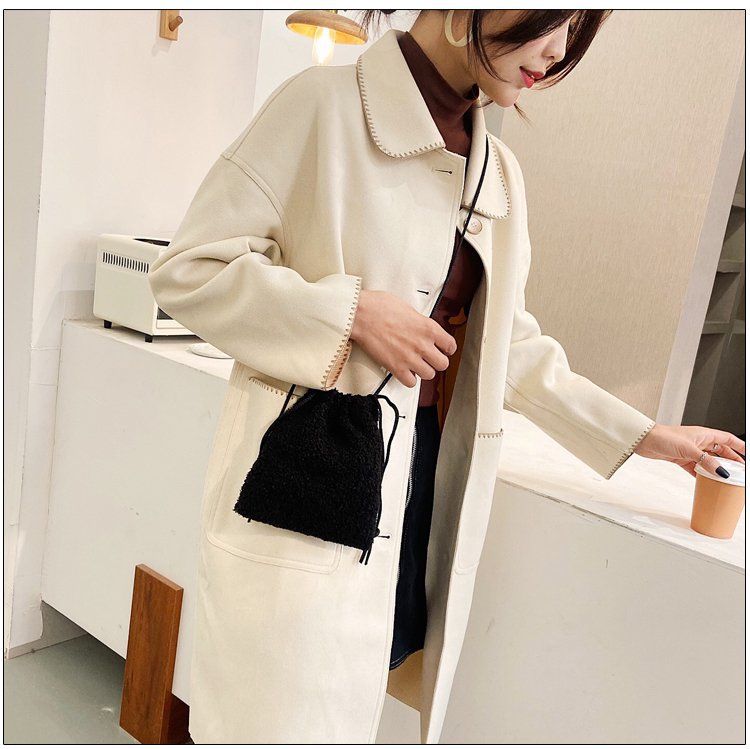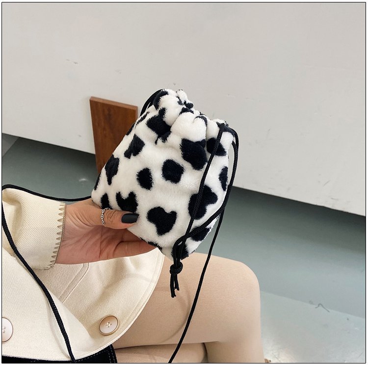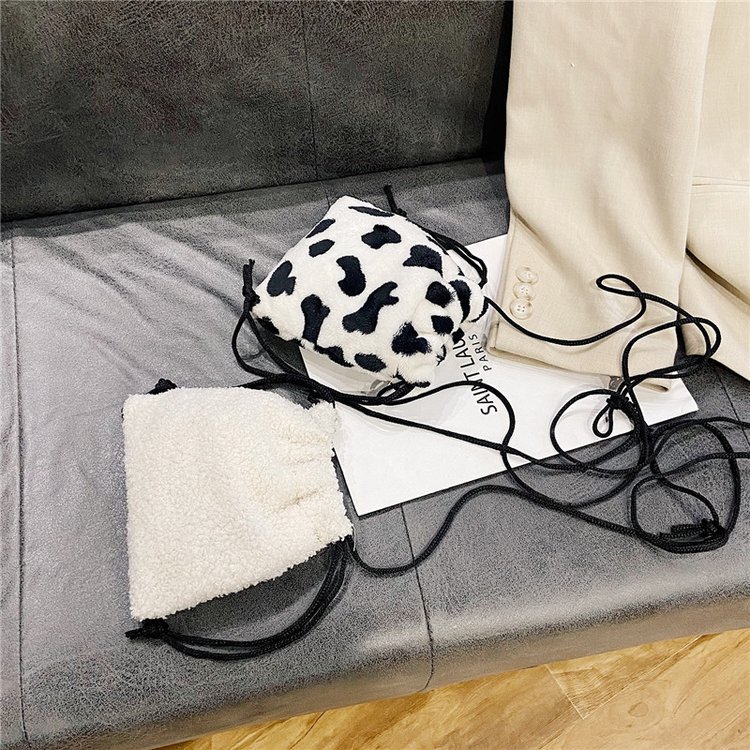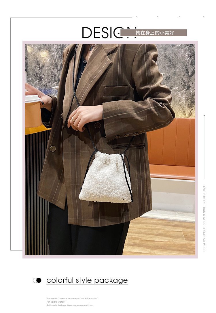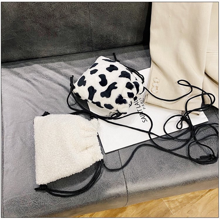 가을과 겨울 봉제 세로 휴대 전화 가방 졸라매는 끈 귀여운 크로스 바디 미니 가방 한국식 모피 학생 소프트 귀여운 싱글 숄더 백