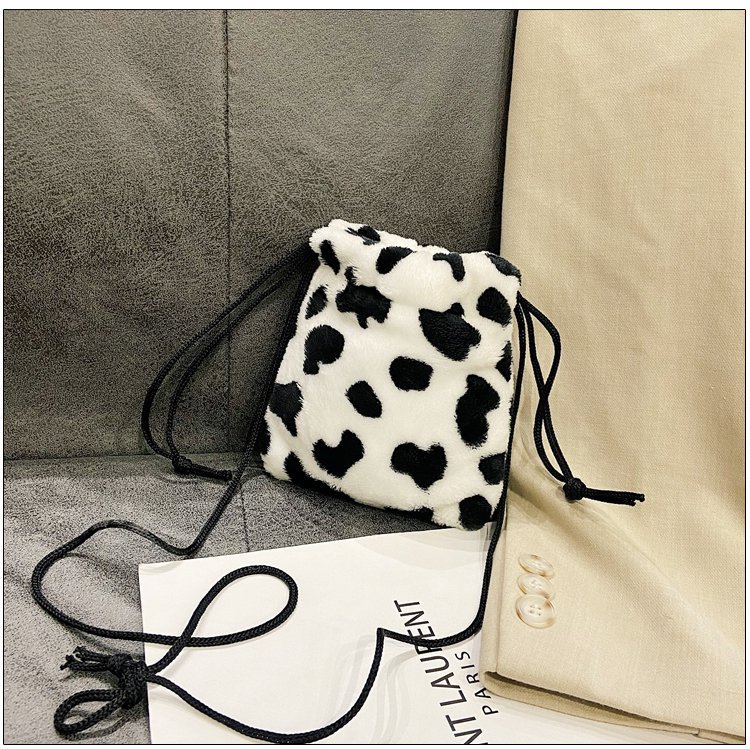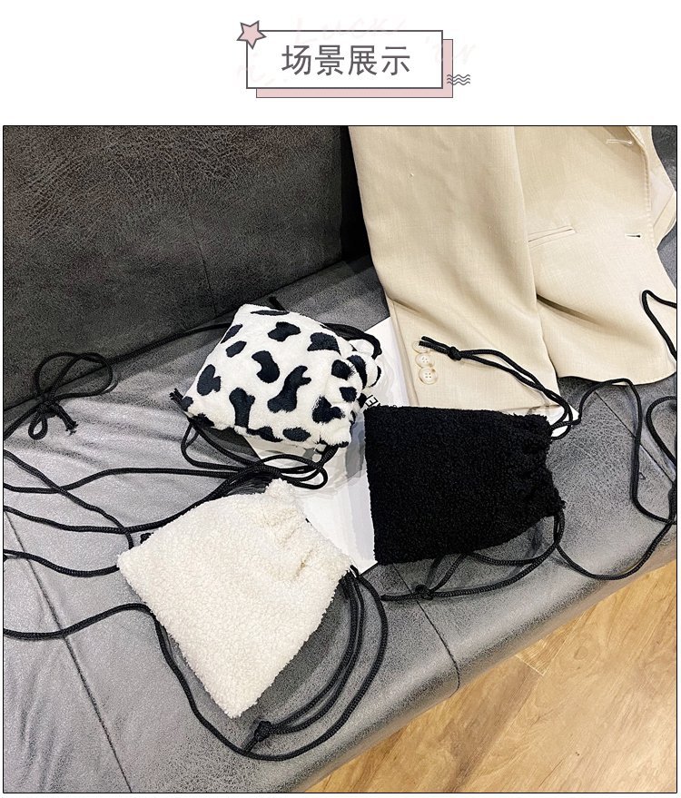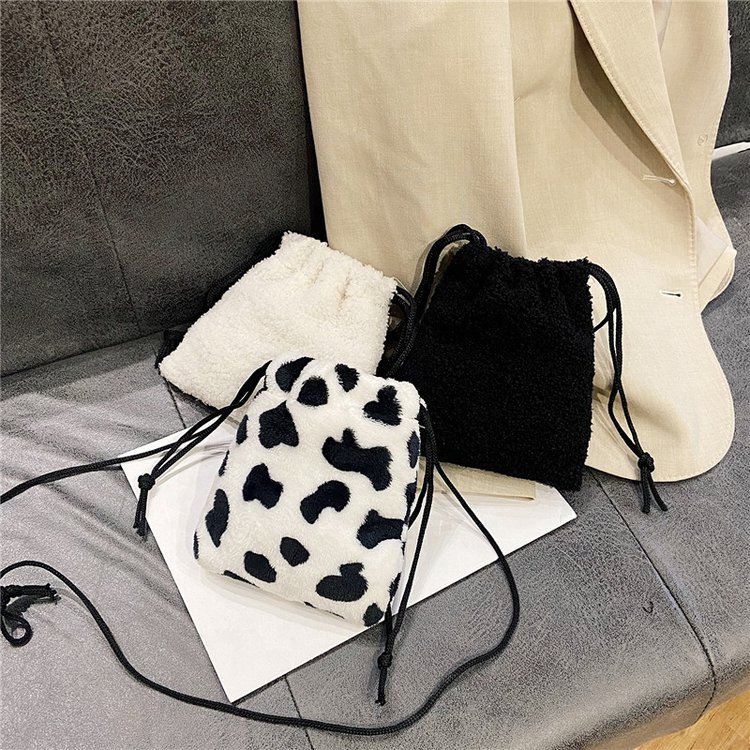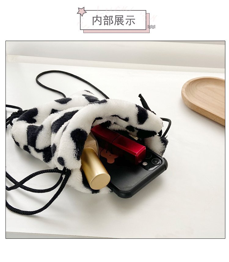 가을과 겨울 봉제 세로 휴대 전화 가방 졸라매는 끈 귀여운 크로스 바디 미니 가방 한국식 모피 학생 소프트 귀여운 싱글 숄더 백스토어 가기