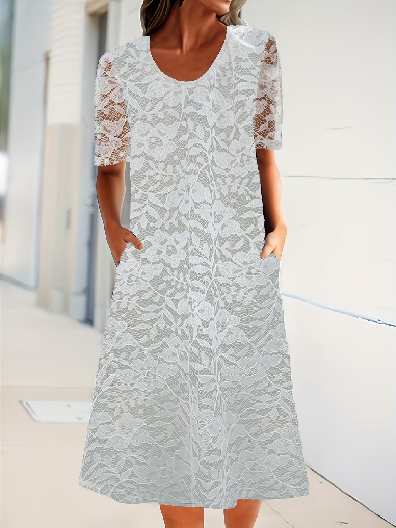 크로스 보더 유럽과 미국 프랑스 휴가 스타일 2022 새로운 라운드 넥 반소매 꽃 긴 원피스스토어 가기