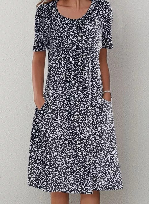 跨境欧美法式度假风 2020新款圆领短袖碎花中长款连衣裙