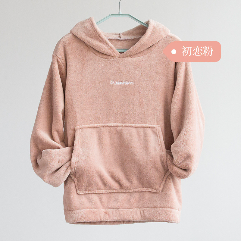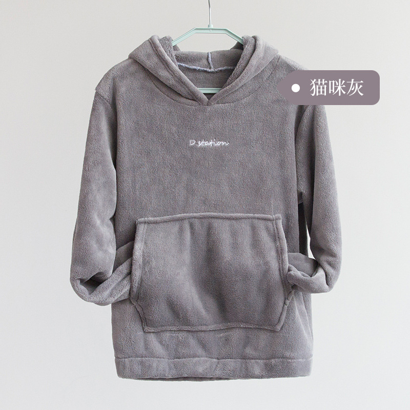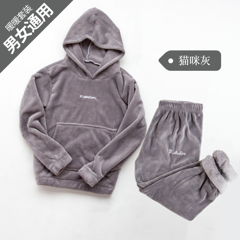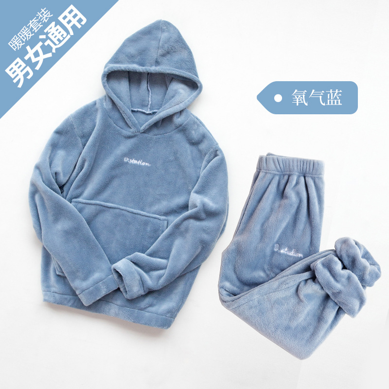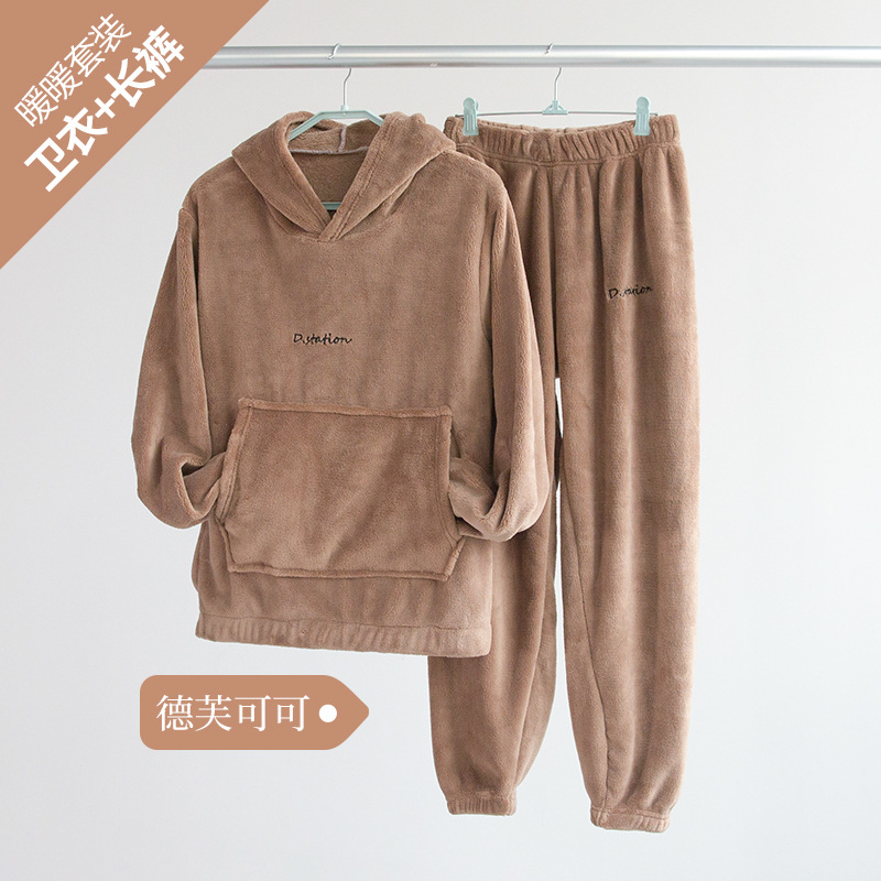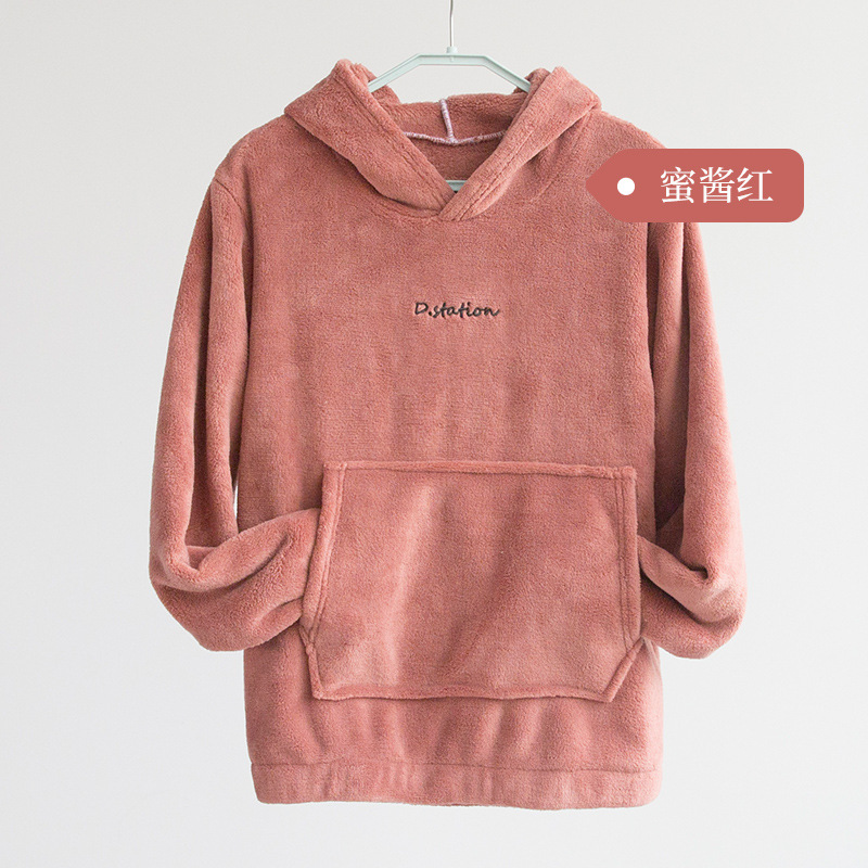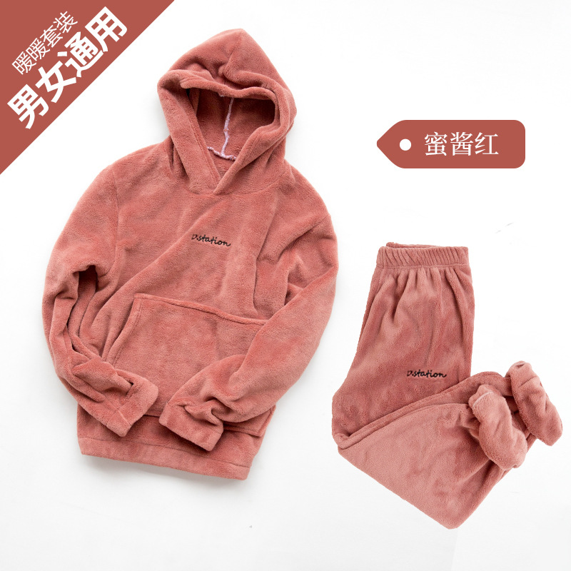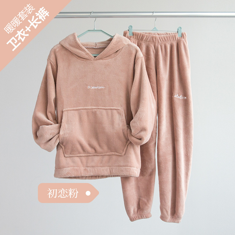산호 양털 요정 랜턴 바지 따뜻한 바지 후드 스웨터 세트 가을과 겨울 캐주얼 플러스 사이즈 느슨한 겉옷 가정 옷