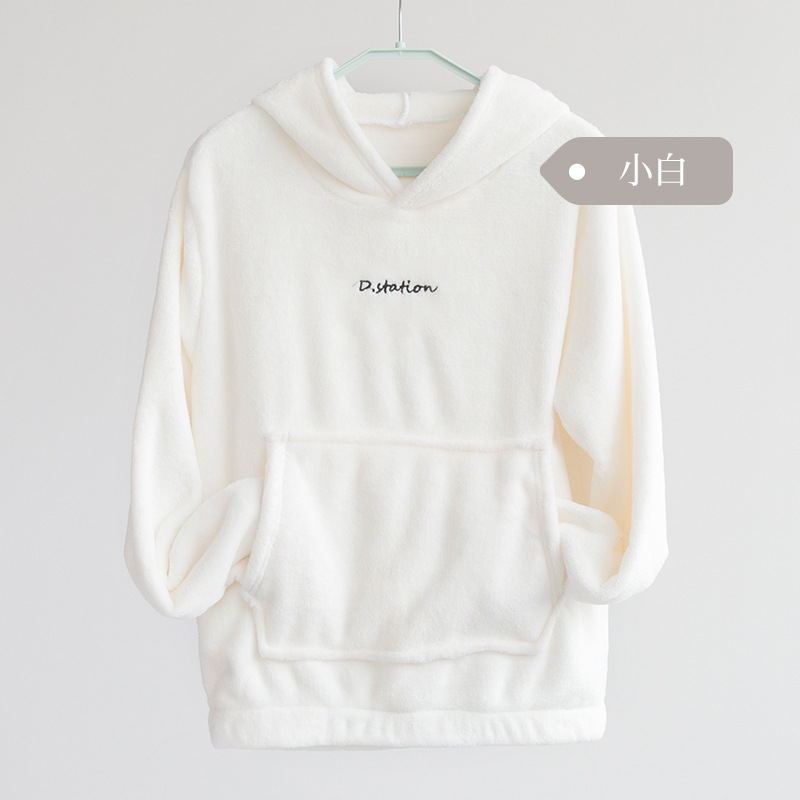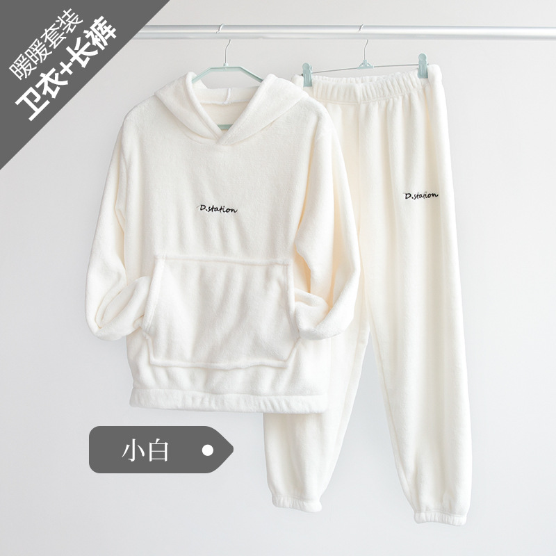 산호 양털 요정 랜턴 바지 따뜻한 바지 후드 스웨터 세트 가을과 겨울 캐주얼 플러스 사이즈 느슨한 겉옷 가정 옷스토어 가기