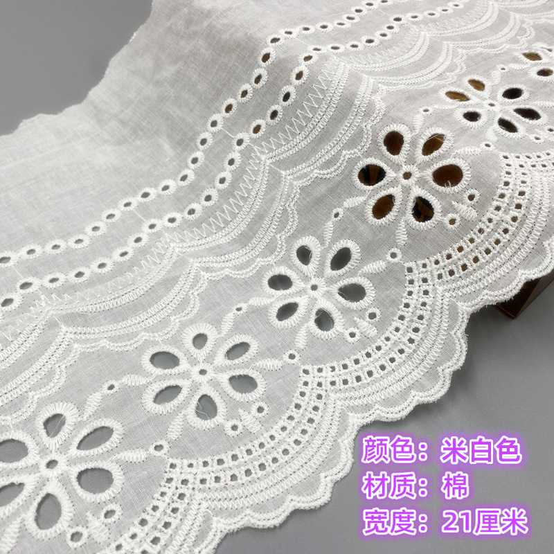 공장 직접 공급 폭 21cm 면 자수 레이스 액세서리 DIY 스커트 침구 커튼 코튼 레이스스토어 가기