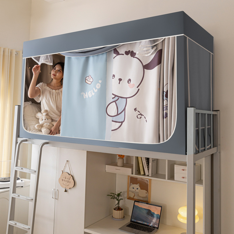 코팅 된 학생 기숙사 침대 커튼 모기장 통합 기숙사 대학생 상하 벤트 4 면 그늘진 침대 커튼 공주스토어 가기