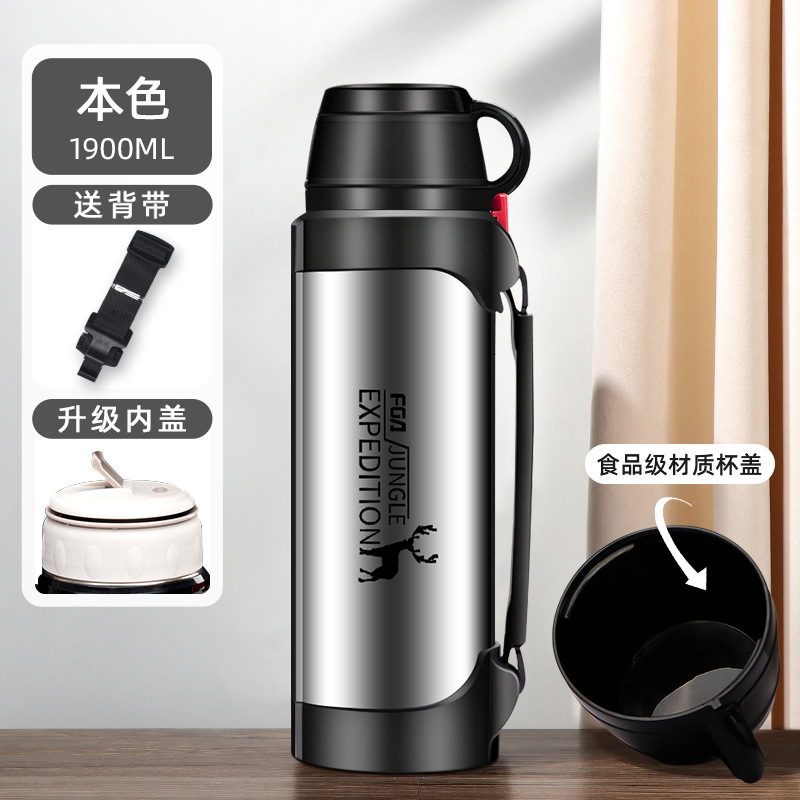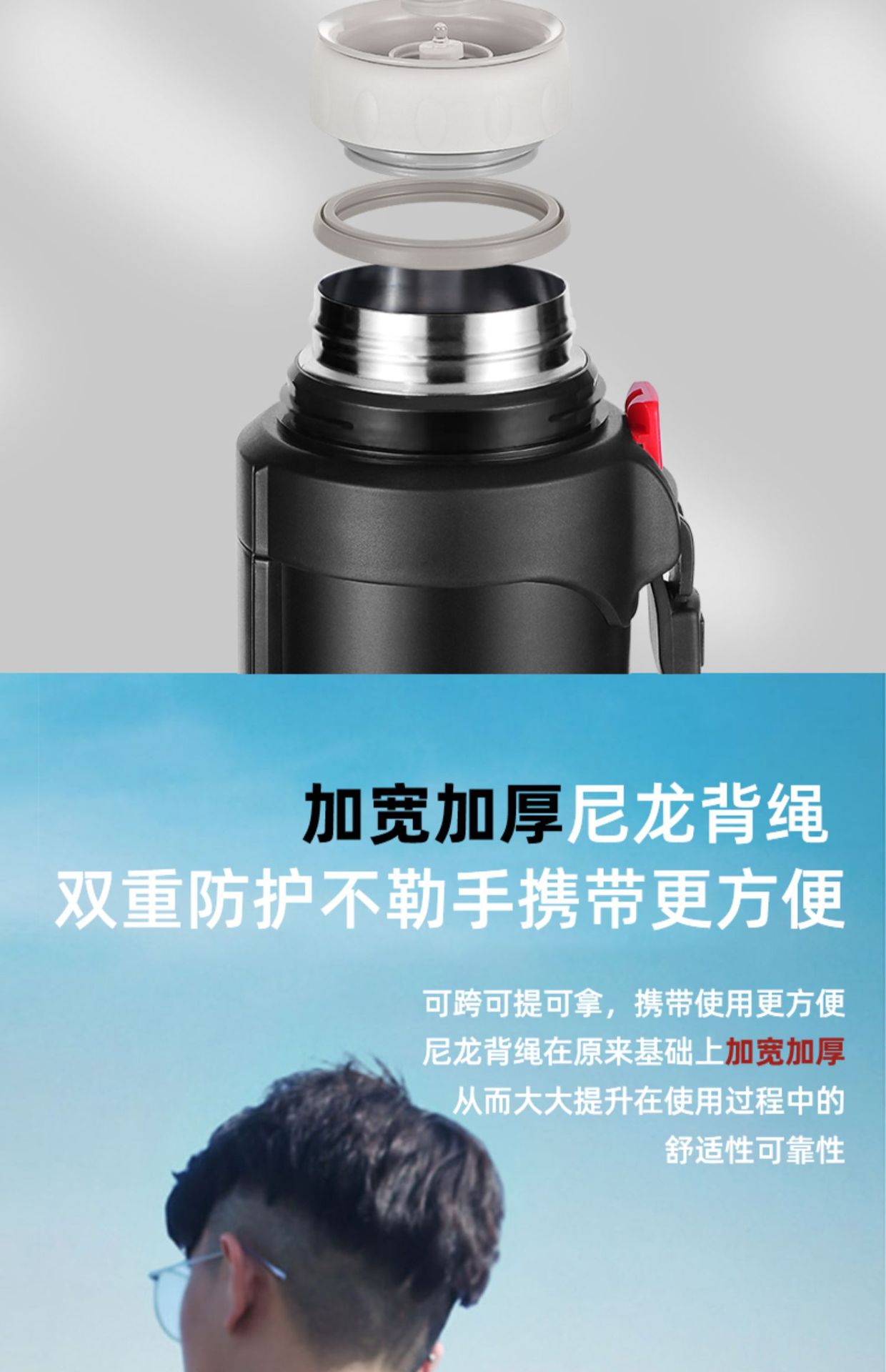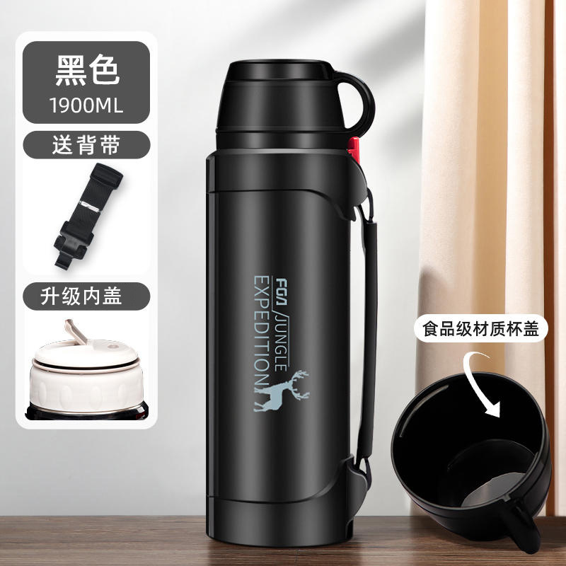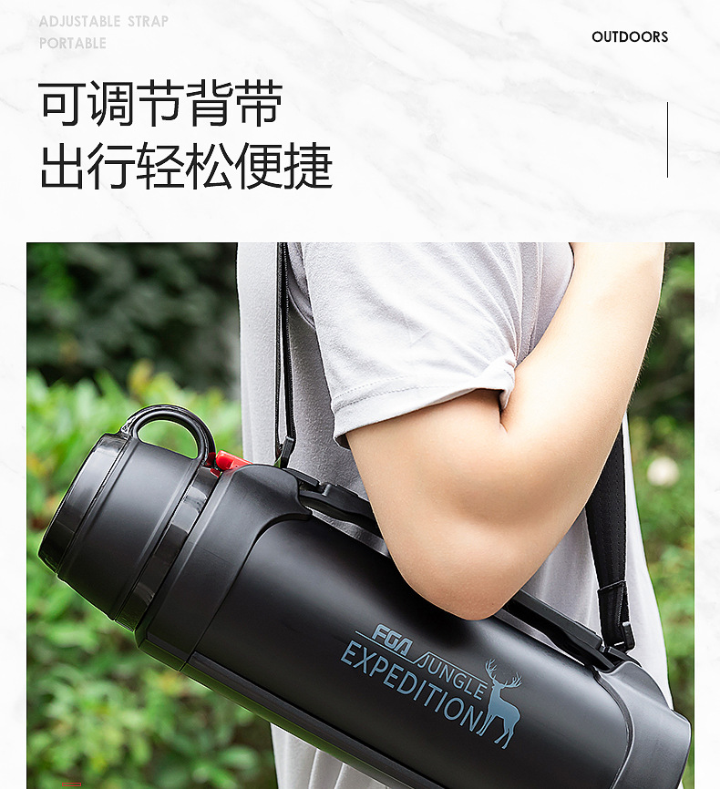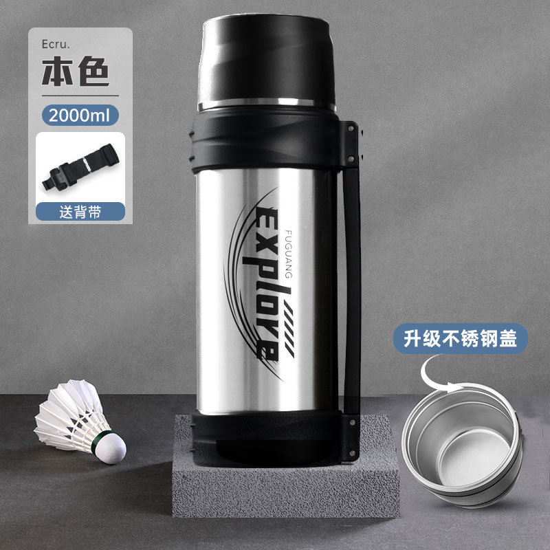 푸광 보온병 대용량 304 스테인리스 야외 여행용 보온병 휴대용 가정용 스트랩 온수병 도매
