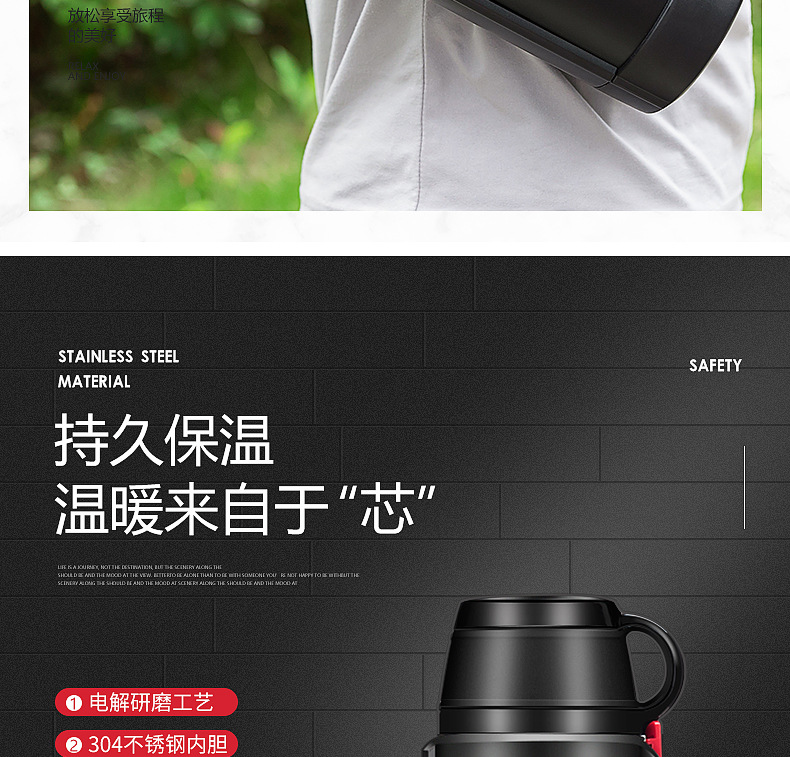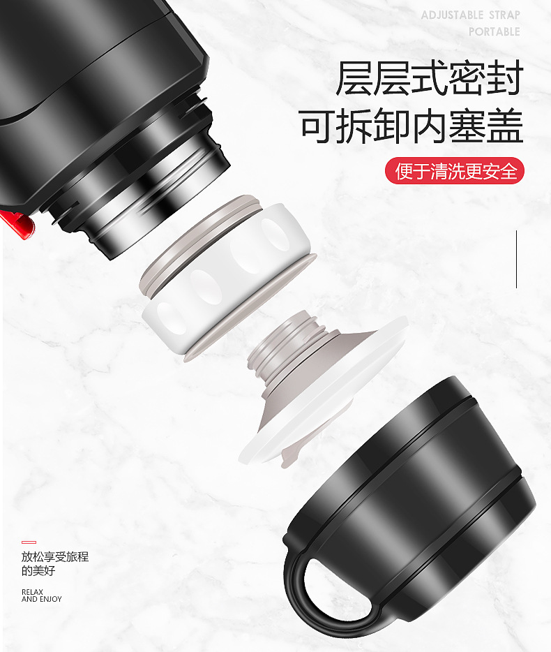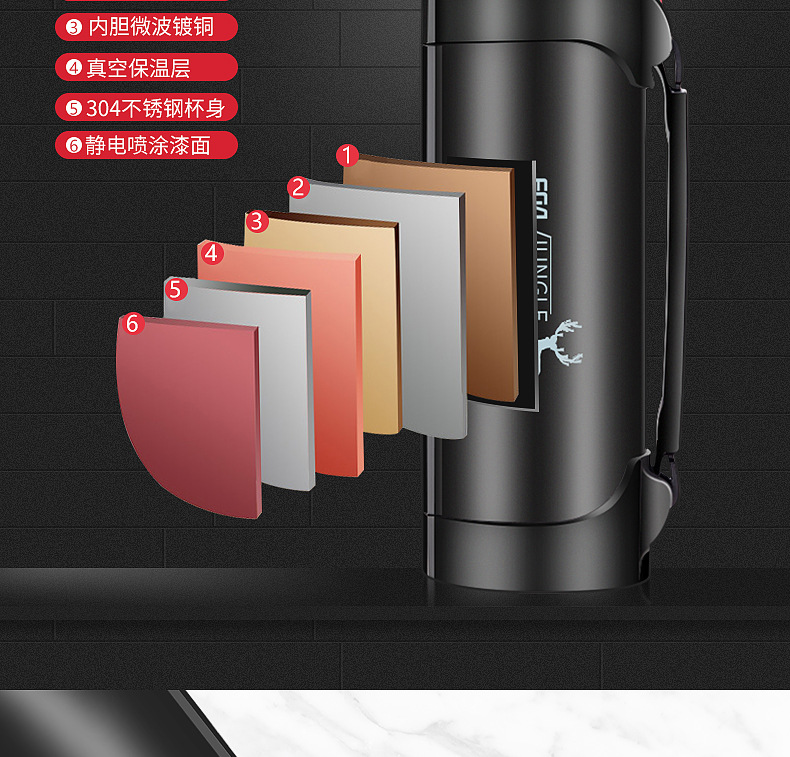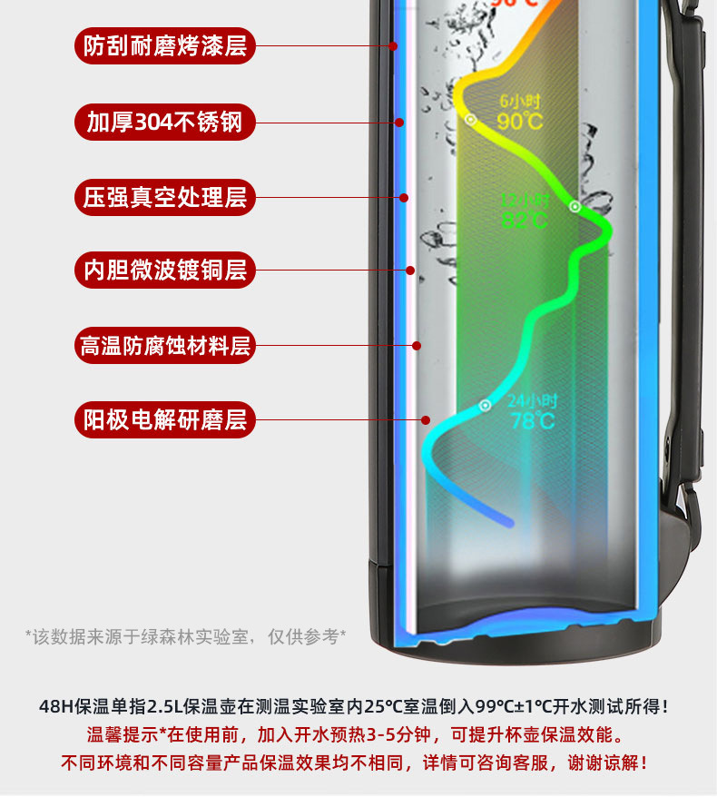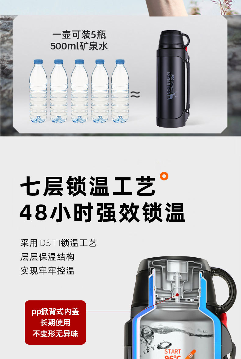 푸광 보온병 대용량 304 스테인리스 야외 여행용 보온병 휴대용 가정용 스트랩 온수병 도매