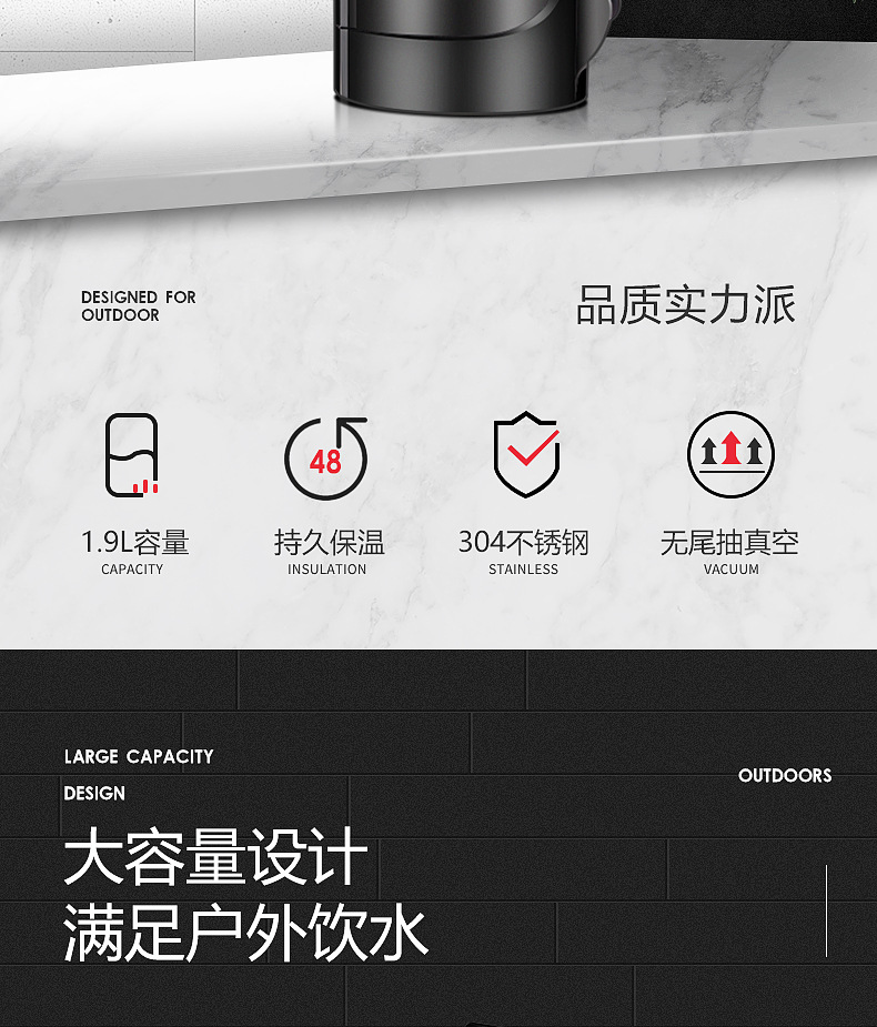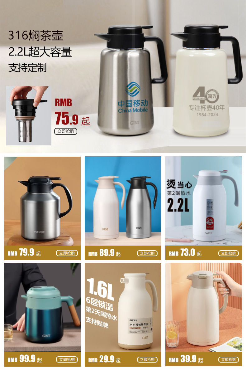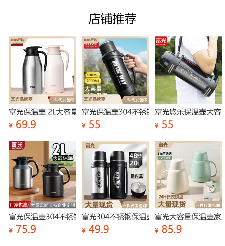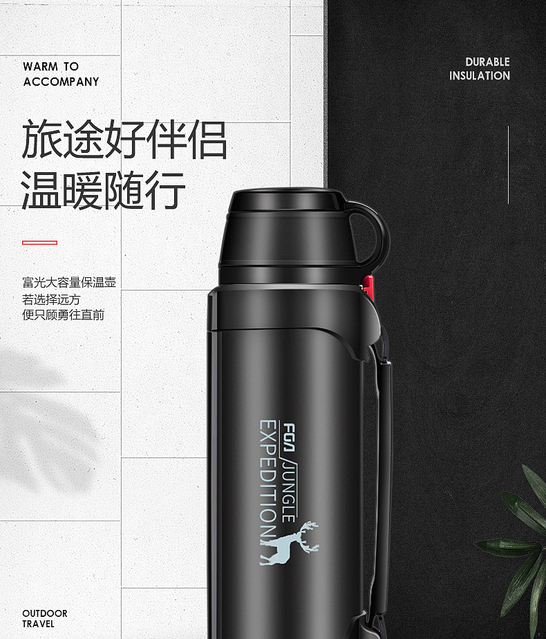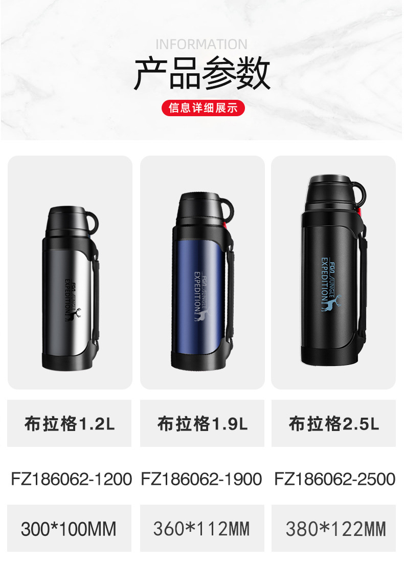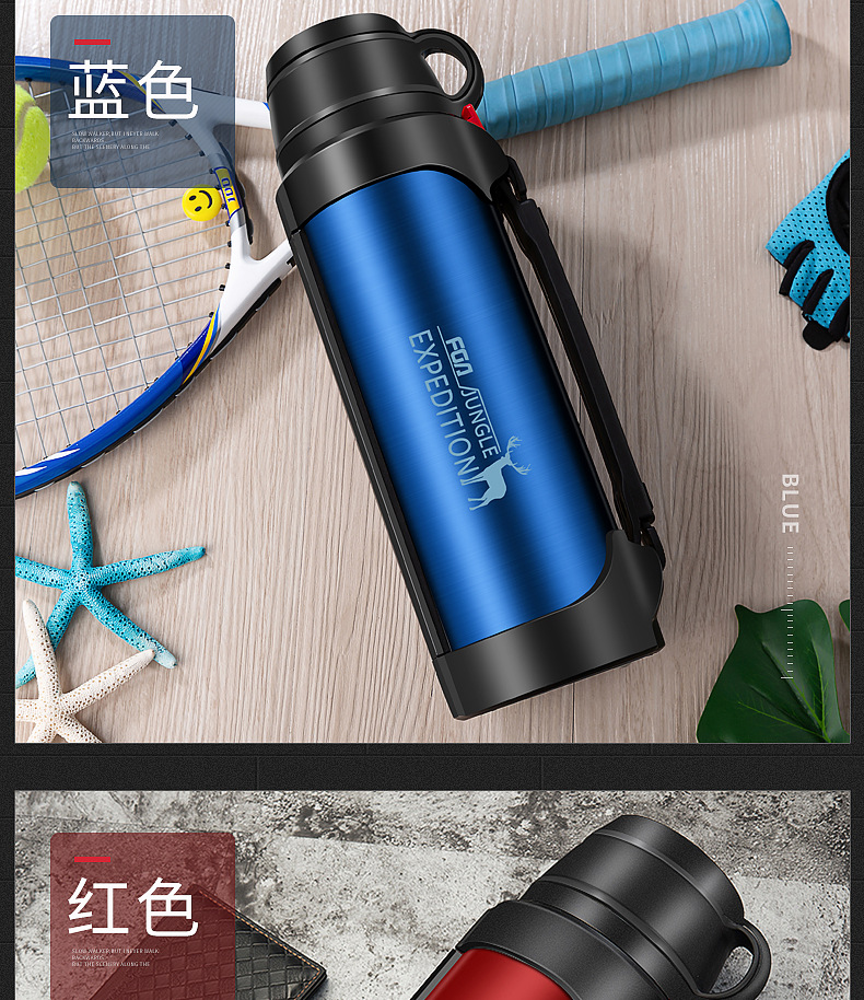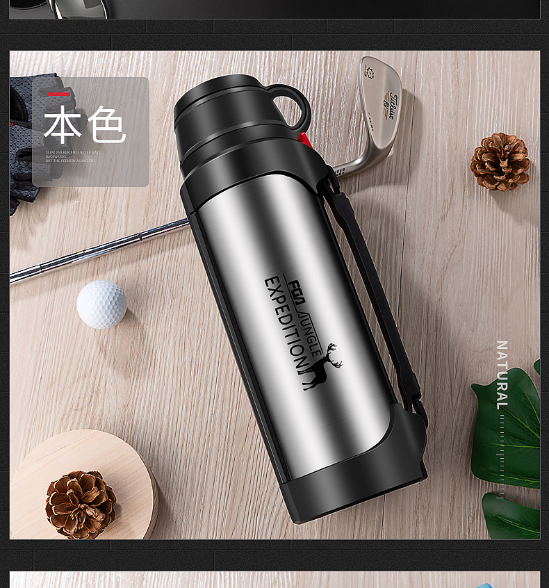 푸광 보온병 대용량 304 스테인리스 야외 여행용 보온병 휴대용 가정용 스트랩 온수병 도매스토어 가기