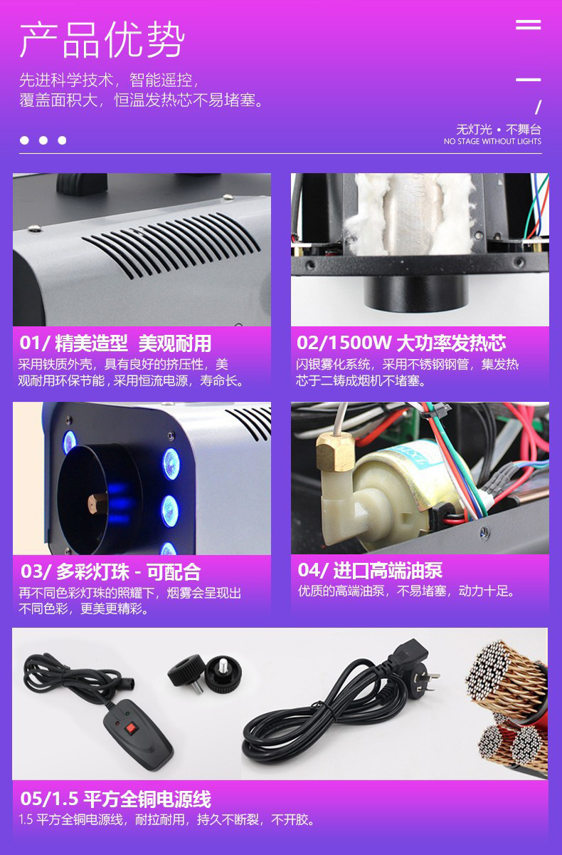 Jiechuang 1500w 전자 담배 대형 연기 기계 무대 특수 항온 다채로운 연기 기계 바 무대 유형 국경 간스토어 가기