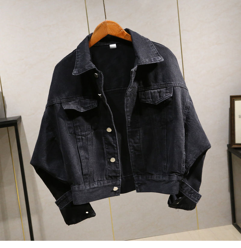 블랙 배트 슬리브 숏 데님 재킷 여성용 2020 봄 가을 신상 한국 스타일 루즈핏 BF 홍콩 스타일 학생 재킷 트렌디스토어 가기