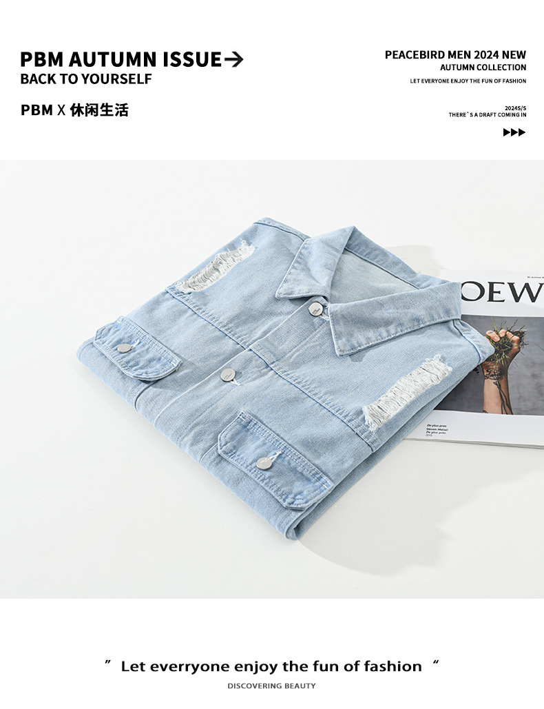 2078 봄과 가을 새로운 남성 데님 자켓 트렌디 남성복 워싱 데님 자켓 한국 루즈한 탑스토어 가기