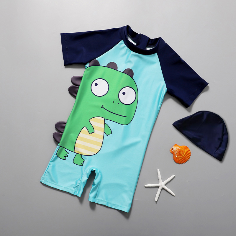 어린이 원피스 수영복 남아 자외선 차단제 속건 소년 잘 생긴 귀여운 만화 티라노 사우루스 렉스 온천 아기 수영복